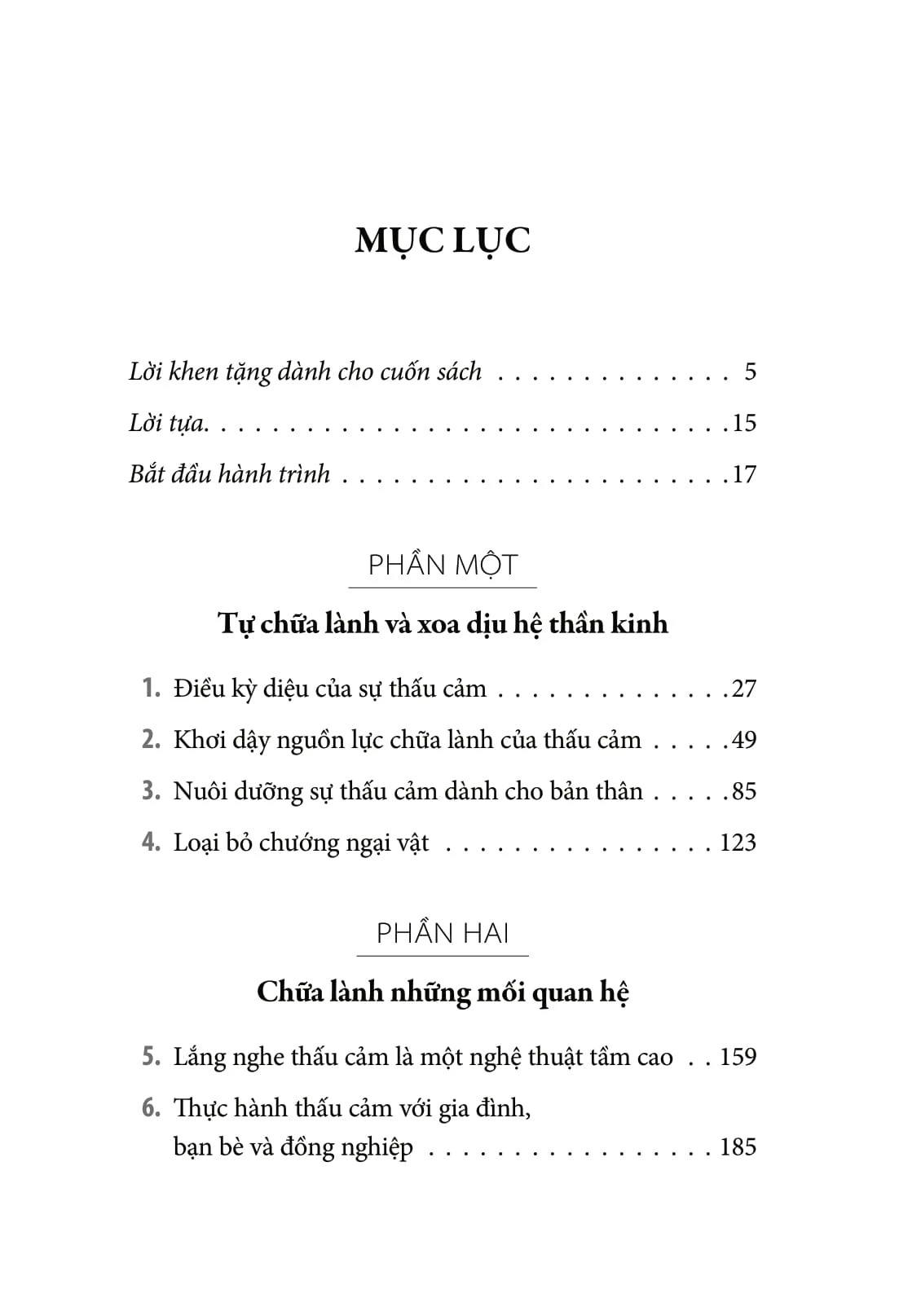 Cuốn sách mở ra một hành trình ba bước: thấu cảm với chính mình, với người khác và với thế giới – với nhiều chiến lược cụ thể, bài tập thực hành và chia sẻ cá nhân chân thật.