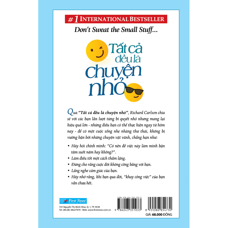 Được khái quát thành 81 đề mục nhỏ với những mẩu chuyện, những lời khuyên, chia sẻ hoặc dẫn chứng về nội dung đang được đề cập, cuốn sách là một cẩm nang sống tuyệt vời. Qua “Tất cả đều là chuyện nhỏ”, Richard Carlson chia sẻ với các bạn lần lượt từng bí quyết nhỏ nhưng mang lại hiệu quả lớn - những điều bạn có thể thực hiện ngay từ hôm nay - để có một cuộc sống nhẹ nhàng thư thái, không bị vướng bận bởi những chuyện vặt vãnh.