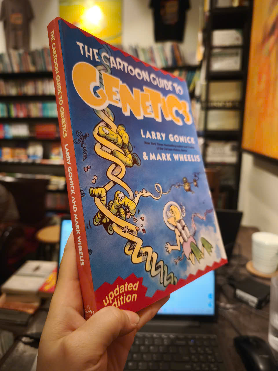 Bạn đã bao giờ tự hỏi: Liệu gen ghép có giống với quần Levis được vá không? Watson và Crick? Họ không phải là một đội thám tử người Anh sao? Giới tính thực vật? Họ có thể làm được điều đó không? Đột biến di truyền có phải là tên của một trong những ban nhạc heavy metal không? Asparagine? Trong bốn nhóm thực phẩm thì nhóm đó nằm trong nhóm nào? Vậy thì bạn cần The Cartoon Guide to Genetics để giải thích các khái niệm quan trọng của di truyền học cổ điển và hiện đại—nó không chỉ mang tính giáo dục mà còn hài hước nữa!