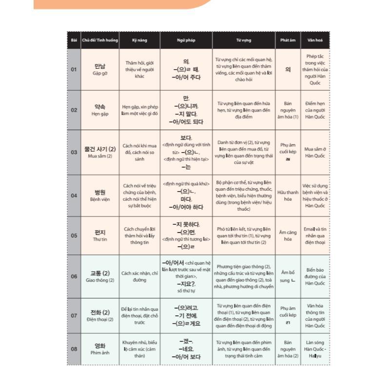 1/ “Tiếng Hàn tổng hợp dành cho người Việt Nam – Sơ cấp 2 – sách bài học” • Đặc điểm nổi bật của sách Đây là bộ giáo trình tiếng Hàn tổng hợp đầu tiên có bản quyền chính thức có mặt tại Việ...