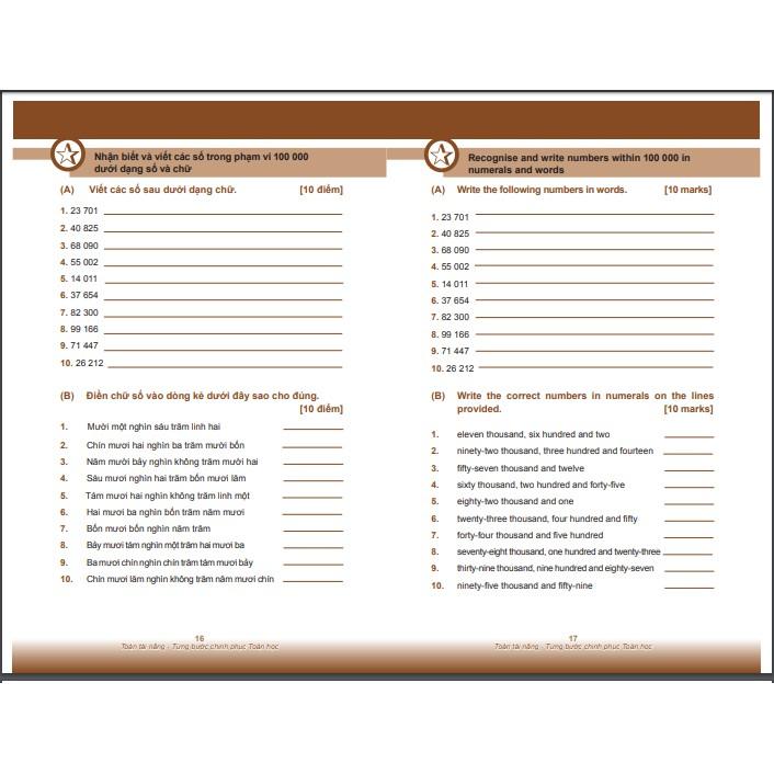 Sách: Toán Tài Năng 3 - Toán Lớp 3 - Dành cho học sinh từ 8-9 tuổi ( bộ 2 cuốn) - Tập 1 - 3A- Là sách song ngữ ( Việt – Anh) giúp trẻ vừa học toán vừa ôn luyện Tiếng Anh, giúp trẻ ghi nhớ từ vựng, họ...