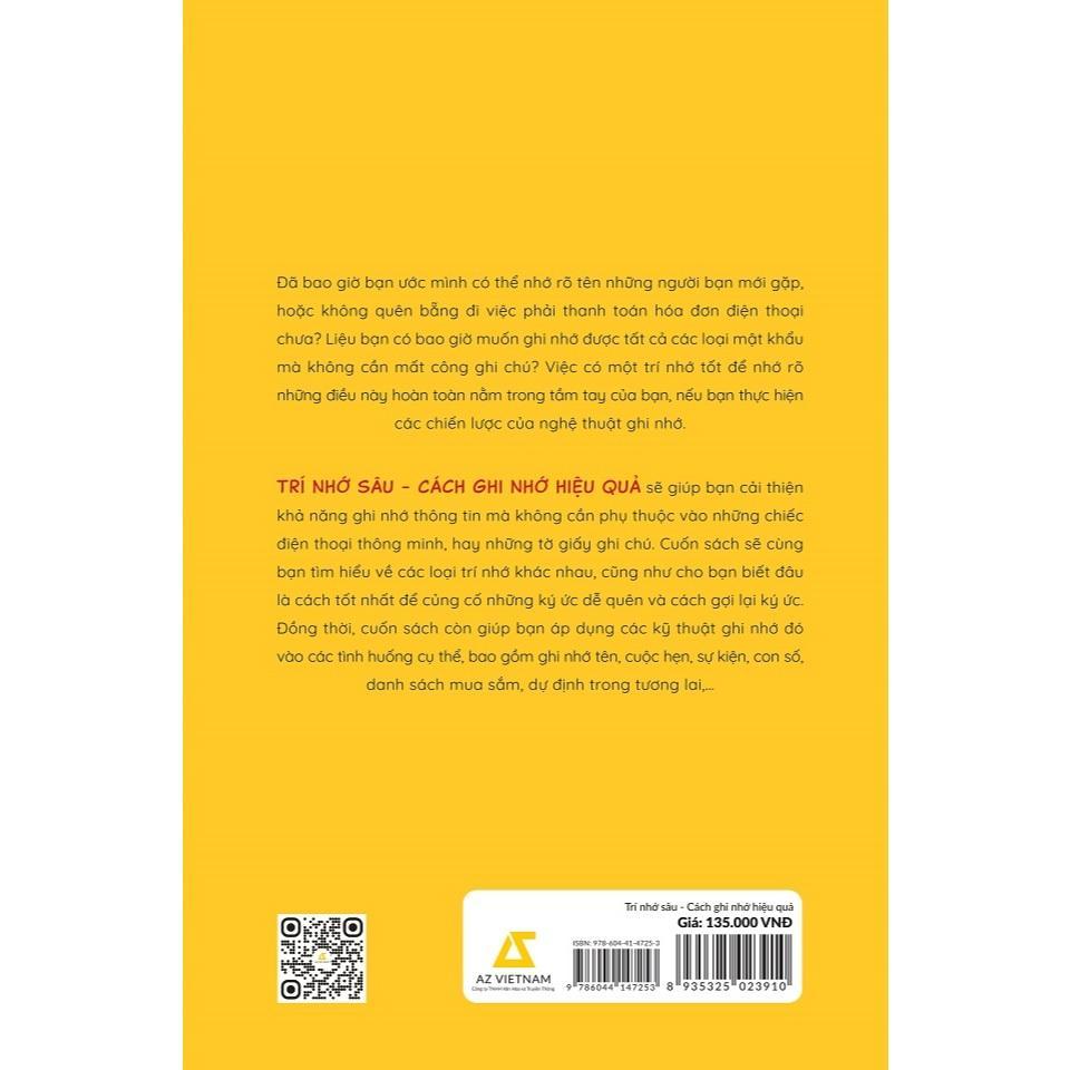Hy vọng cuốn sách “TRÍ NHỚ SÂU - CÁCH GHI NHỚ HIỆU QUẢ” sẽ trở thành công cụ giúp bạn thoát khỏi những phiền phức mà “não cá vàng” đem lại, xây dựng sự tự tin vào khả năng trí tuệ của bản thân.