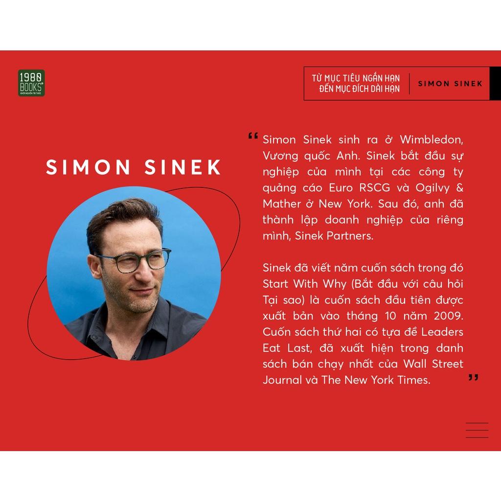 Cuốn sách “Từ mục tiêu ngắn hạn đến mục đích dài hạn” sẽ hướng dẫn bạn cách đúng đắn để chơi trò chơi kinh doanh vô cực này. Qua đó tác giả Simon Sinek đã đưa ra một chiến lược để dẫn đầu với tư duy vô hạn. Những nhà lãnh đạo với lối suy nghĩ vô hạn, sẵn sàng thách thức hiện trạng và thay thế nó với một thực tế mới sẽ có khả năng khiến cho bản ngã con người cố hữu của tất cả chúng ta cảm thấy an toàn hơn, sẵn sàng cống hiến cho một điều gì đó lớn lao hơn chính bản thân và cung dưỡng cho chúng ta cũng như gia đình, để từ đó xây dựng các tổ chức mạnh mẽ hơn và sáng tạo hơn trên toàn thế giới.