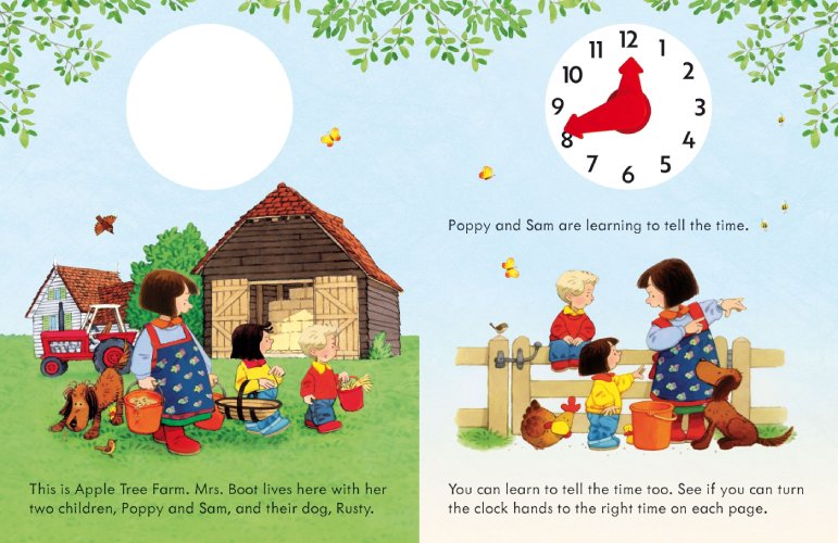 Follow a day in the life of the Boot family, as Poppy and Sam learn to tell the time along with the reader. Young readers can turn the hands on the attached clock face to match the time of all kinds of activities on Apple Tree Farm.
