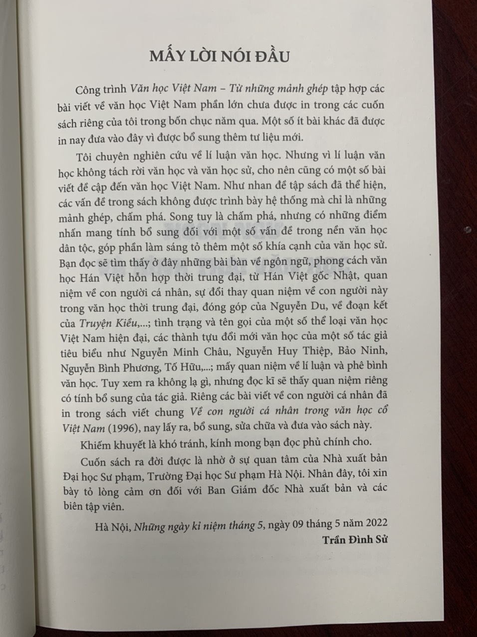Cuốn sách tuyển chọn các bài viết theo năm nhóm chính sau: Ngôn ngữ và hình thái văn học; Con người cá nhân trong văn học trung đại Việt Nam; Nguyễn Du, “Truyện Kiều”, Hồ Xuân Hương; Văn học hiện đại và Mấy nét về lí luận văn học. Những bài viết này bao gồm những bài đã được đăng trên các tạp chí hoặc một số sách (không phải là các tập sách riêng của tác giả) và nhiều bài viết mới chưa từng được công bố của các tác giả. Như nhan đề tập sách đã thể hiện, các vấn đề trong sách không được trình bày hệ thống mà chỉ là những mảnh ghép, chấm phá. Song tuy là chấm phá, nhưng có những điểm nhấn mang tính bổ sung đối với một số vấn đề trong nền văn học dân tộc, góp phần làm sáng tỏ thêm một số khía cạnh của văn học sử. Bạn đọc sẽ tìm thấy ở đây những bài bàn về ngôn ngữ, phong cách văn học Hán Việt hỗn hợp thời trung đại, từ Hán Việt gốc Nhật, quan niệm về con người cá nhân, sự đổi thay quan niệm về con người này trong văn học thời trung đại, đóng góp của Nguyễn Du, về đoạn kết của Truyện Kiều,; tình trạng và tên gọi của một số thể loại văn học Việt Nam hiện đại, các thành tựu đổi mới văn học của một số tác giả tiêu biểu như Nguyễn Minh Châu, Nguyễn Huy Thiệp, Bảo Ninh, Nguyễn Bình Phương, Tố Hữu,; mấy quan niệm về lí luận và phê bình văn học. Tuy xem ra không lạ gì, nhưng đọc kĩ sẽ thấy quan niệm riêng có tính bổ sung của tác giả.