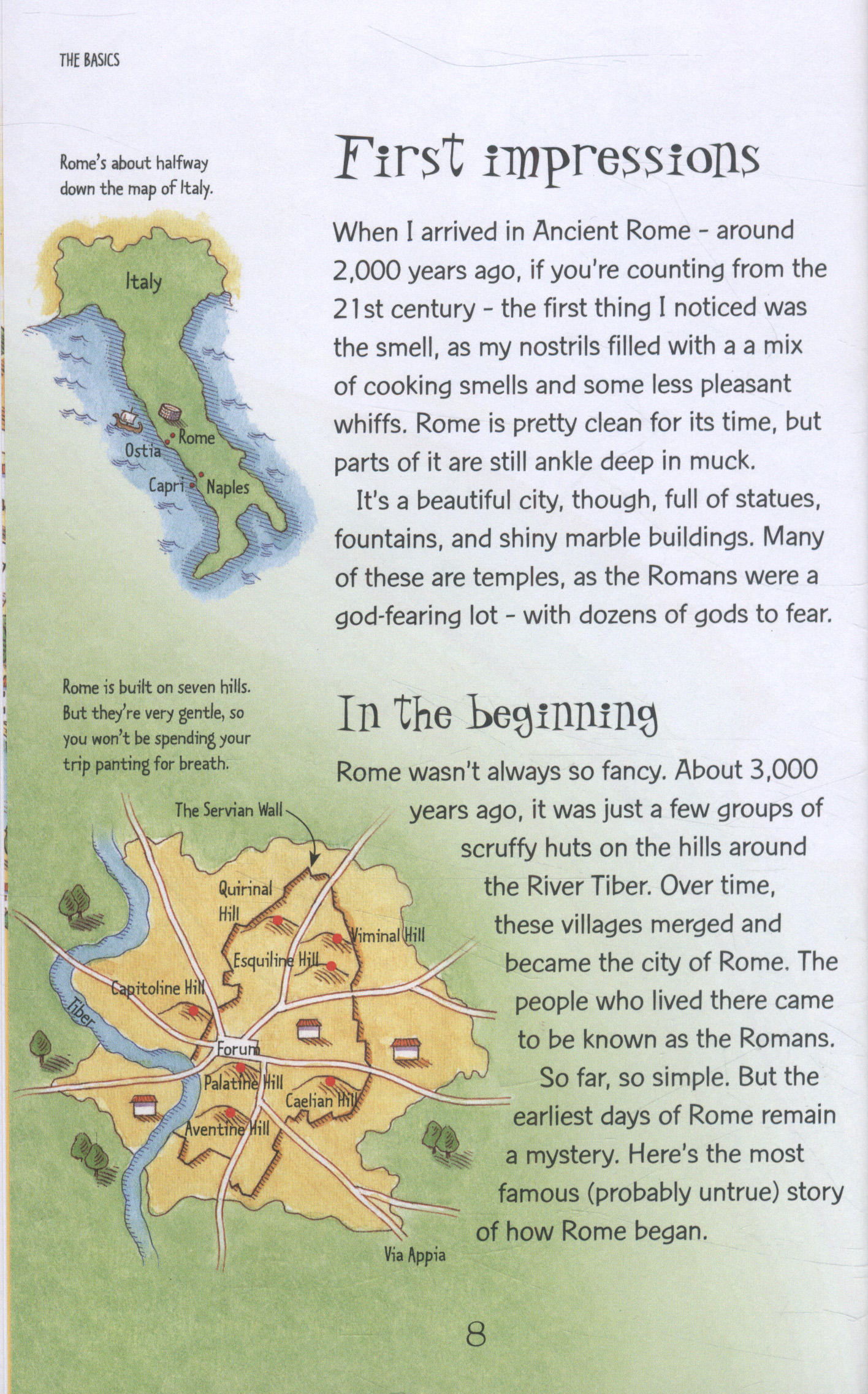 Cuốn sách này bao gồm tất cả các khía cạnh của cuộc sống La Mã Cổ đại, từ cách người La Mã trồng trọt và những gì họ ăn cho đến các vị thần La Mã và cách họ được tôn thờ. Với các hình minh họa hoạt hình hài hước, hộp thông tin và dòng thời gian, cùng với hướng dẫn về các biệt thự và khu chợ tốt nhất. Nội dung và các trang mục lục được bao gồm, cùng với các liên kết internet để giúp trẻ em tìm hiểu thêm.