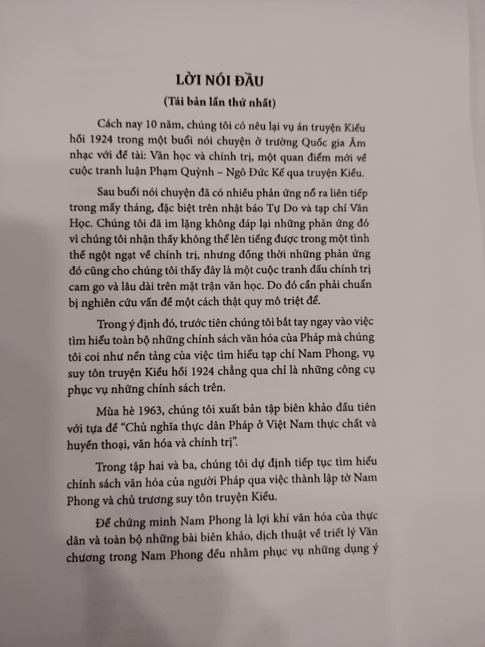 VỤ ÁN TRUYỆN KIỀU TÁC GIẢ : NGUYỄN VĂN TRUNG NXB Hội nhà văn - Trường Phương BOOKS NĂM : 02/2023 - KHỔ 16 X 24 BÌA MỀM - 260 trang “Vụ án Truyện Kiều” của tác giả Nguyễn Văn Trung, sách do tác giả ấn hành năm 1970. “Cái ý tưởng của Phạm Quỳnh “Truyện Kiều còn, tiếng ta còn” không phải là sáng kiến của Phạm Quỳnh nhưng là của Pháp. Một nhà báo Pháp, André Gaudbye đã so sánh tác phẩm “Shabname” của nhà thơ Firdousie, người Ba Tư, nhân dịp kỷ niệm 1000 năm với Kim Vân Kiều của Nguyễn Du trong bài “Một gương Ba Tư cho người An Nam”, người Ba Tư trong bao thế kỷ chịu người Ả Rập áp bức mà không mất nước vì có “Shahnameh” có Firdousie. Do đó, muốn cứu vãn một dân tộc, chỉ cần có một ngôn ngữ được ấn định bằng một tuyệt tác. Sau khi chứng minh như trên, nhà báo Pháp kêu gọi: Các bạn đã đọc câu sau cùng này chưa? Nó có gợi ý gì cho các bạn không? Phần tôi, tôi nghĩ ngay đến cuốn Kim Vân Kiều của người An Nam. Dĩ nhiên có nhiều khác biệt giữa Firdousie và Nguyễn Du, giữa Shahnameh và Kim Vân Kiều của người An Nam. Nhưng cái gương là ở chỗ sứ mệnh linh thiêng cứu rỗi do các tác phẩm vĩ đại quốc gia đảm nhiệm.” Nguyễn Văn Trung không còn xa lạ gì với chúng ta: Nguyễn Văn Trung của mấy quyển sách triết. Nguyễn Văn Trung của tạp chí Đại Học, Nguyễn Văn Trung của môn triết học tại Đại Học Văn Khoa. Nay chúng ta lại gặp mặt Nguyễn Văn Trung trong vụ “Án truyện Kiều”. Nói đúng hơn, Nguyễn Văn Trung không đi sâu vào vụ “án Kiều” mà chỉ phê phán người trước kia đã từng phê phán truyện Kiều, nghĩa là ông đem xử lại những người trước kia đã xử Kiều vậy.“Phiên tòa” này họp lại Quốc Gia m Nhạc viện, lúc 10 giờ ngày chủ nhật 7/10 (1962- PT chú) vừa qua.