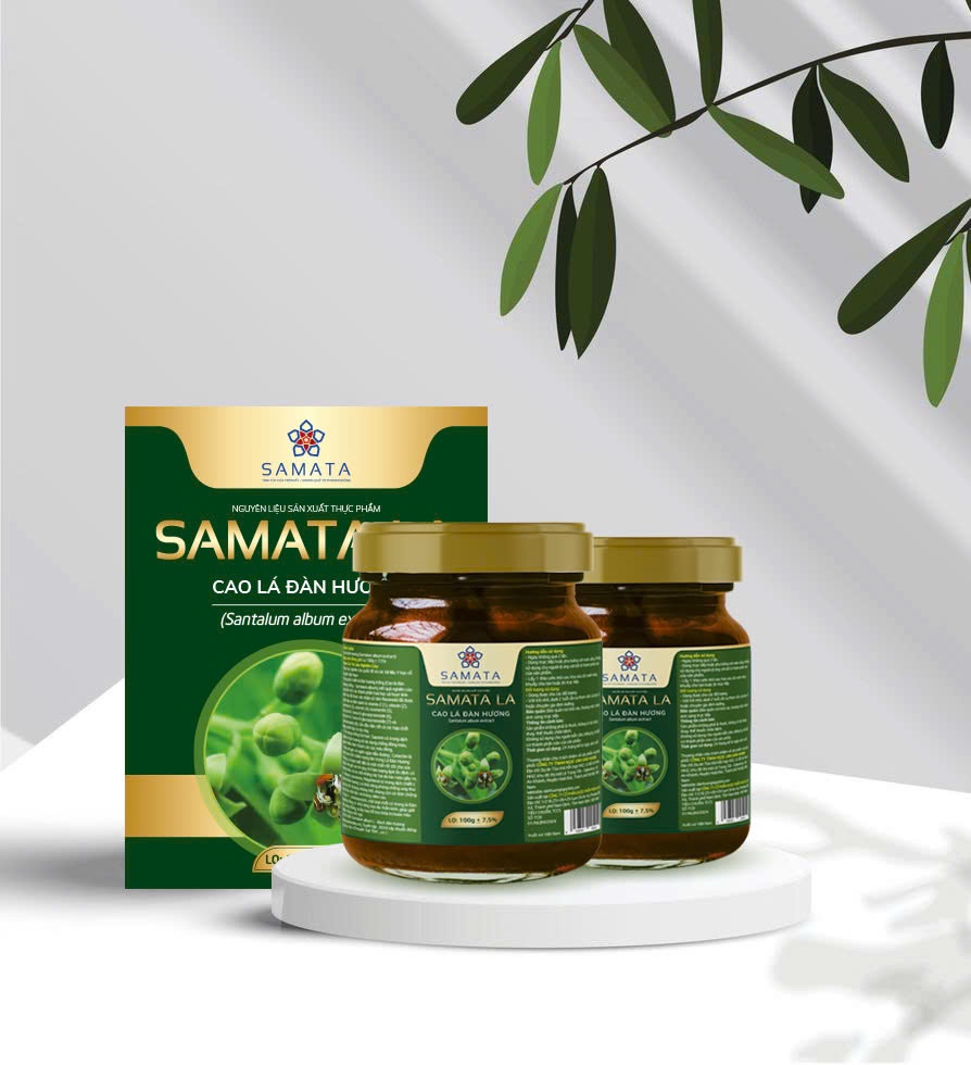 - Tên sản phẩm SAMATA – Cao Lá Đàn Hương (Santalum album extract) - Thành Phần Chính: Lá đàn hương: Chiết xuất từ lá cây đàn hương trắng (Santalum album), giàu dưỡng chất có lợi