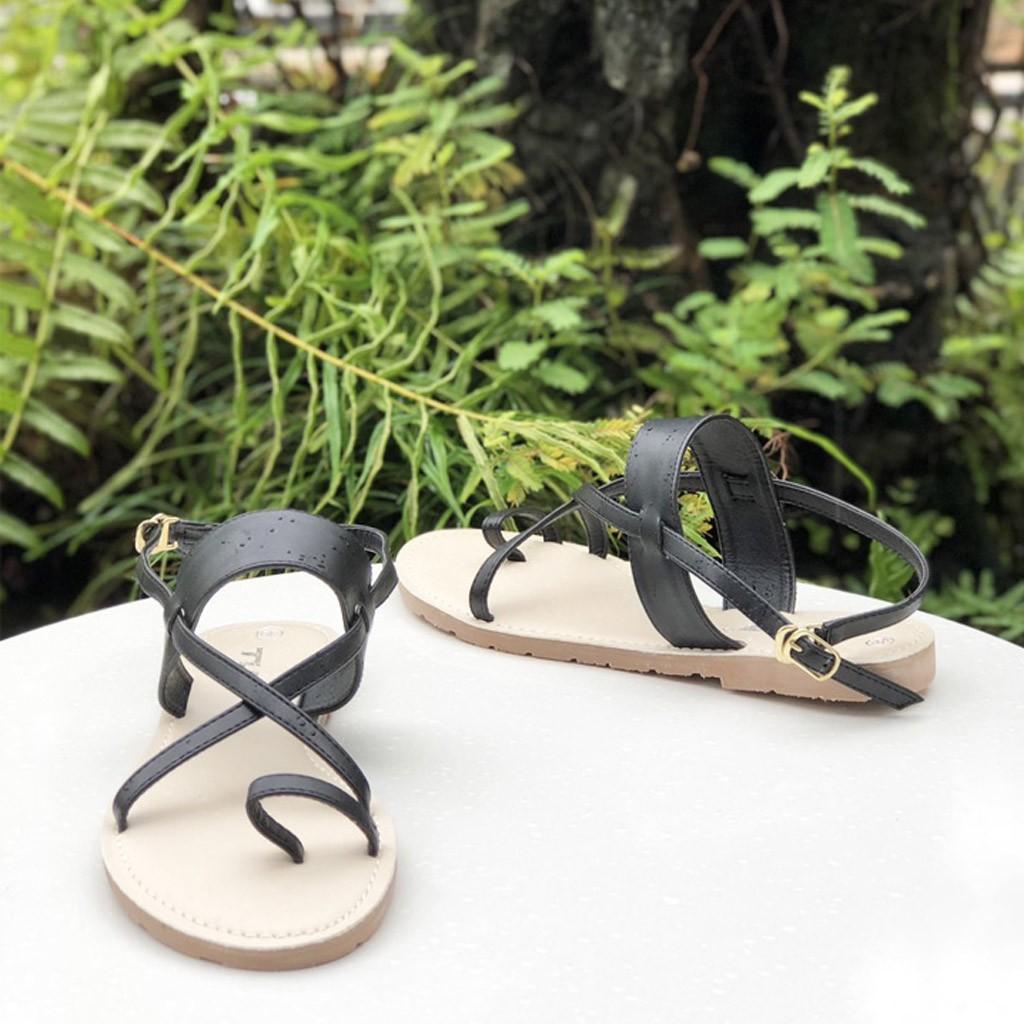 Giầy Sandal Da Nữ Xỏ Ngón Cá Tính - EngMi