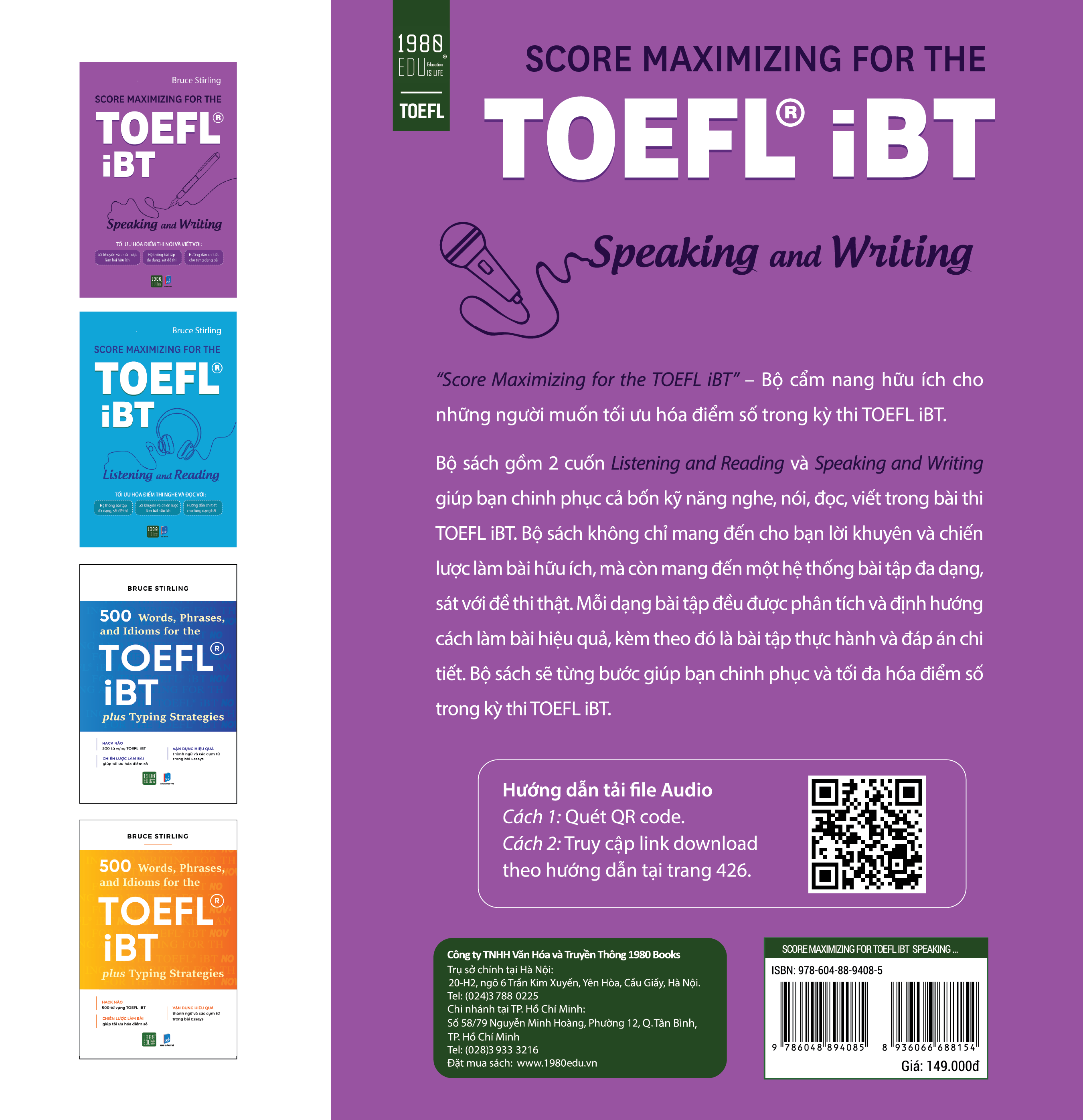 Công ty phát hành 1980 Books Năm xuất bản 2019 Kích thước 16 x 24 cm Bìa mềm Số trang 428 Tác giả: Bruce Stirling Speaking And Writing Strategies For The TOEFL- IBT là một