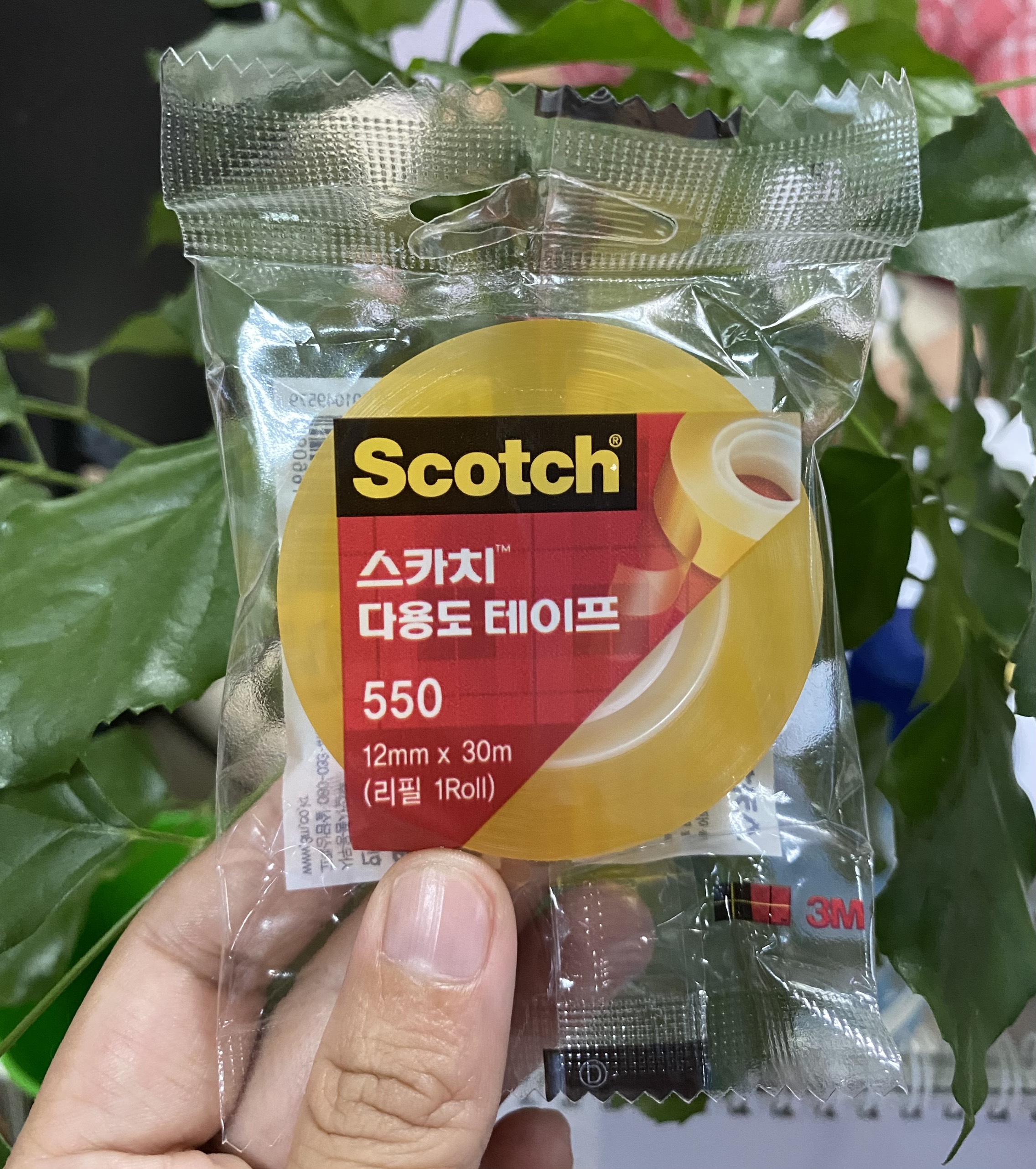 Mua tại TiktokTHÔNG TIN SẢN PHẨM: Mã sản phẩm: 550 Kích thước: 12mm x 30m Thương Hiệu: 3M Thành phần: Băng keo siêu dính Quy cách: 12 cuộn/hộp, Băng keo Scotch của 3M Hàn Quốc có chất lượng vượt trội so với các loại băng keo khác: