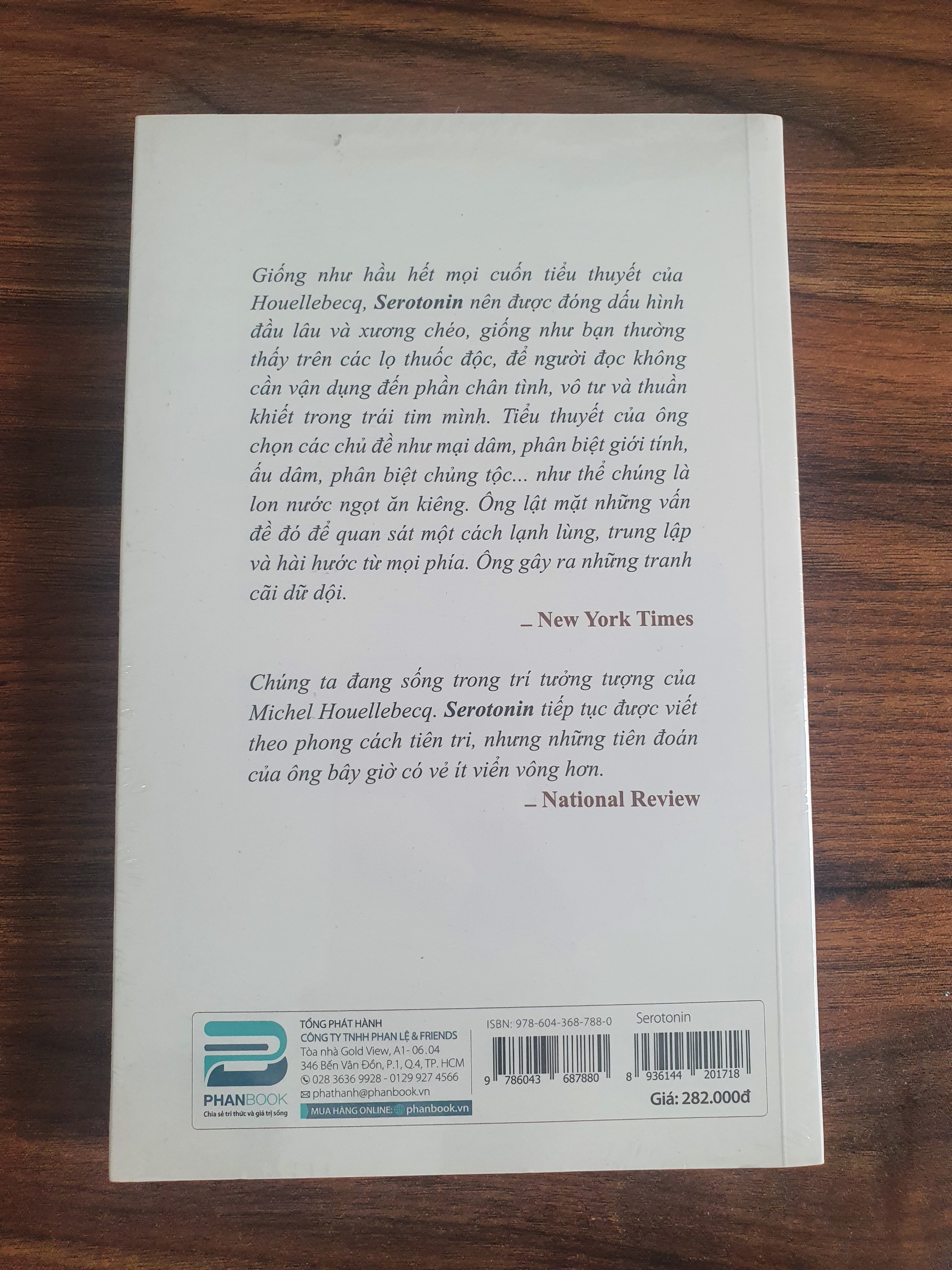 Dữ dội và mạnh mẽ trong ý tưởng, lạnh lùng và trung lập trong góc nhìn, một chút hài hước xen lẫn với nỗi u buồn bàng bạc khắp nội dung, tiểu thuyết Serotonin của Michel Houellebecq là khúc ca lãng mạn và đau thương về những bi kịch của cuộc đời con người .