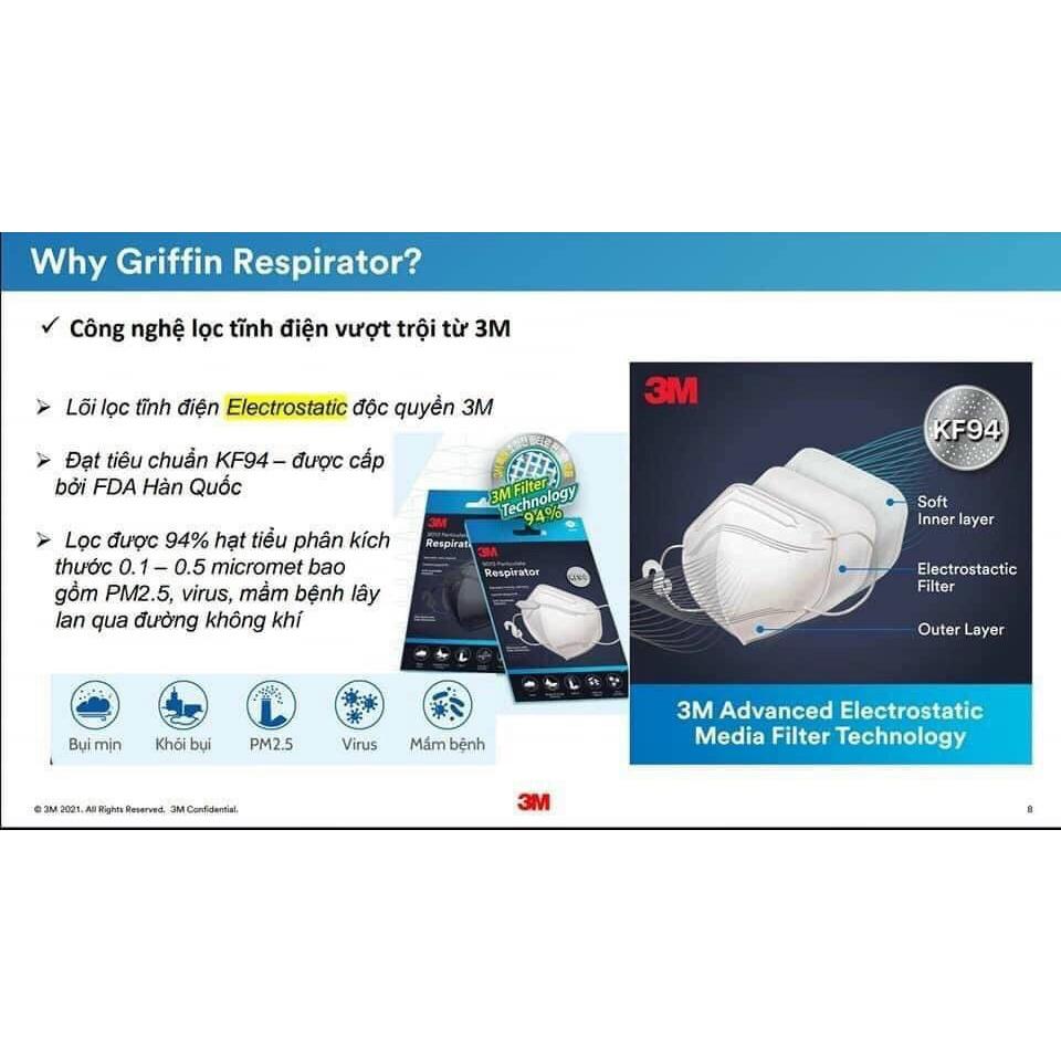 Khẩu trang 3M KF94 - Khẩu trang tiêu chuẩn bảo vệ lên đến 94% vi khuẩn, bụi mịn...