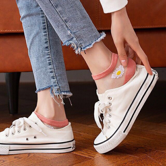 - Tất nữ cổ ngắn hoa cúc: Ngoài công dụng hấp thụ mồ hôi những đôi tất này còn giúp bạn tránh những trầy xước khó chịu cho đôi chân của mình
