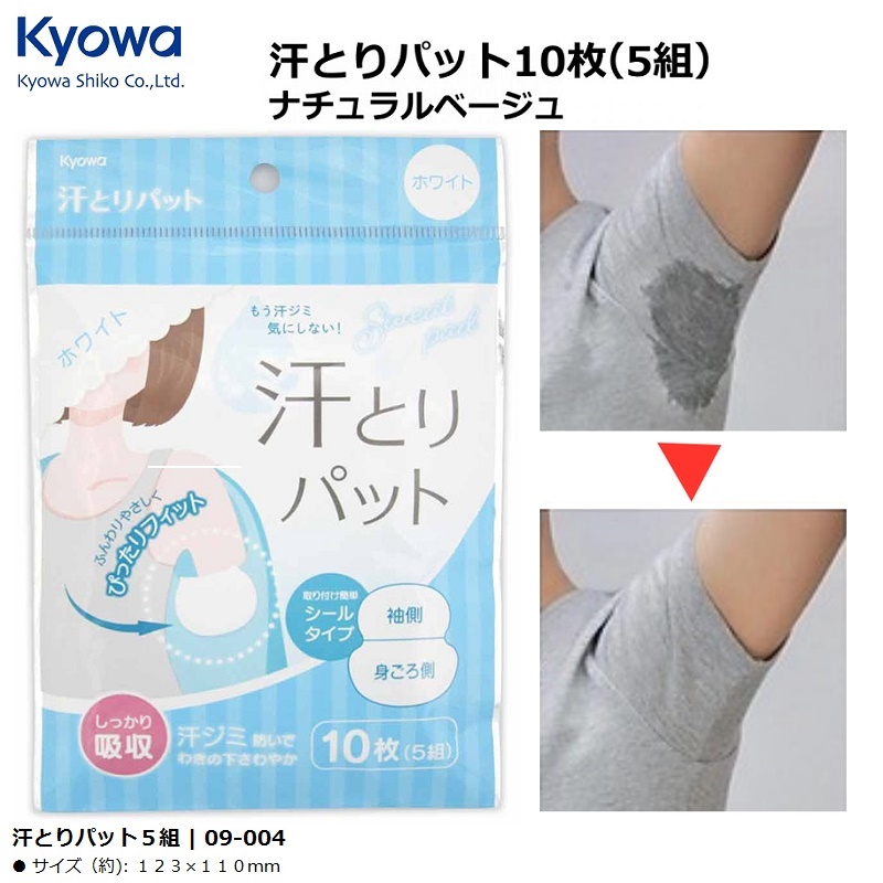 Set 10 miếng dán thấm mồ hôi nách KYOWA (05 cặp) ■ Xuất xứ: Nhật Bản | MADE IN JAPAN ■ NSX: Kyowa Shiko Co., Ltd (Japan) ■ Model: 09-004 | 09-053 ■ Kích thước: 123 x 110mm ■