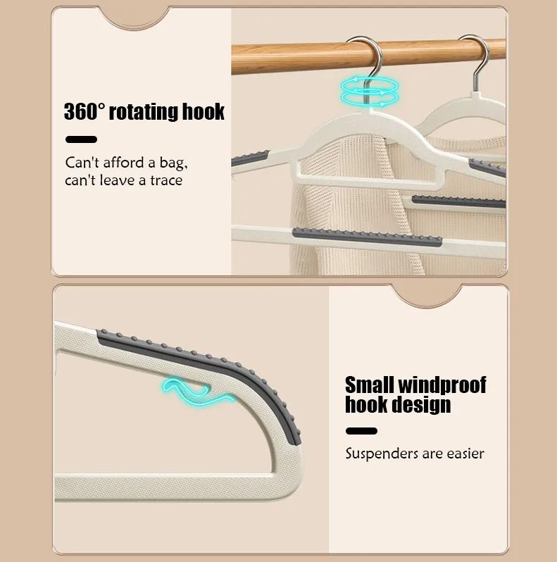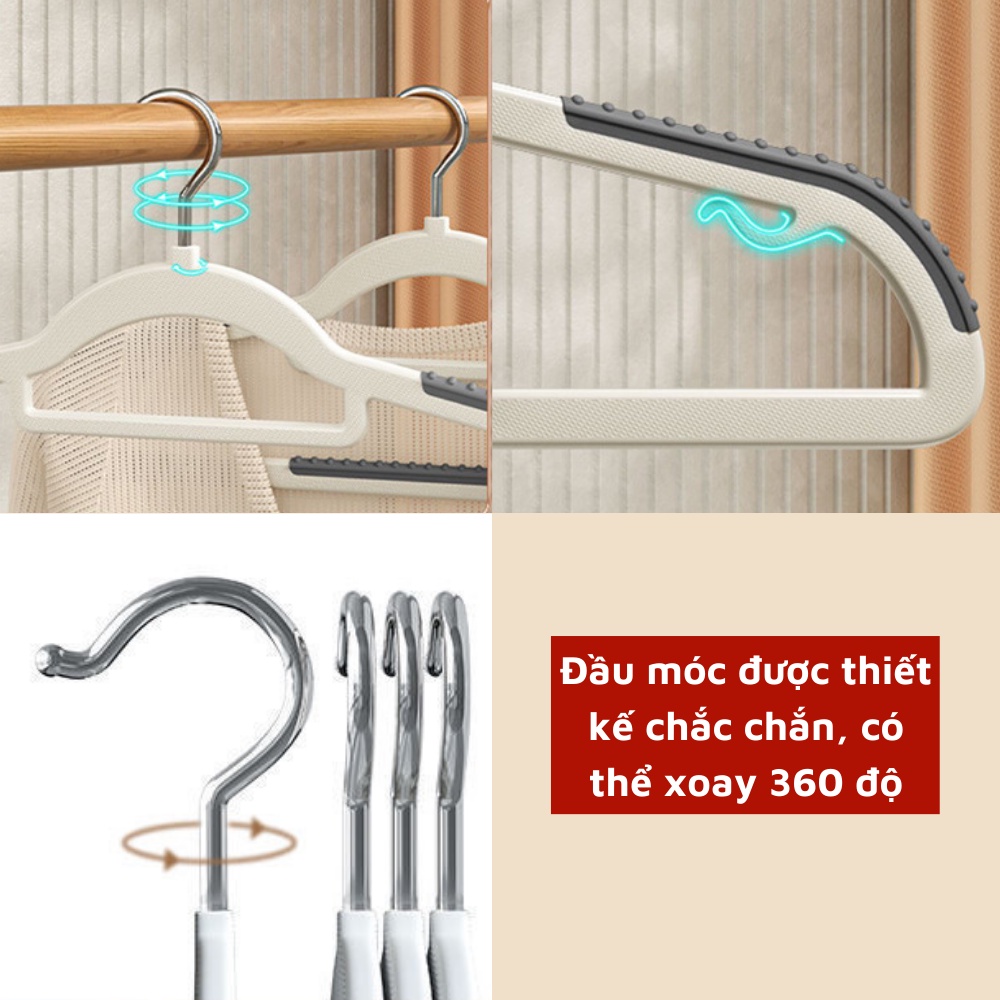 Móc treo quần áo chống trơn trượt, móc xoay 360 độ giúp quần áo không bị rơi, không bị tuột nè