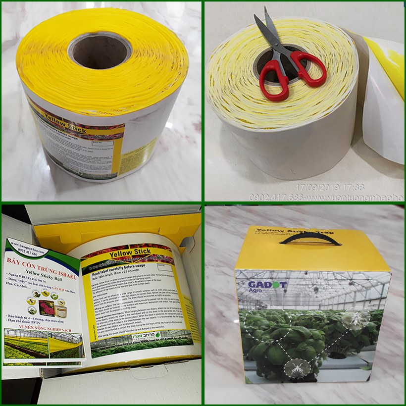 - Bẫy côn trùng ISRAEL (Sticky Yellow Roll) là dạng bẫy dính hấp thụ côn trùng bằng màu sắc với một lớp keo mỏng để bắt côn trùng lại. Bẫy dính có màu vàng là chủ đạo nên hoàn toàn an toàn cho rau màu có đăng ký tiêu chuẩn VietGap, GlobalGà không bị rửa trôi khi cả trời mưa.