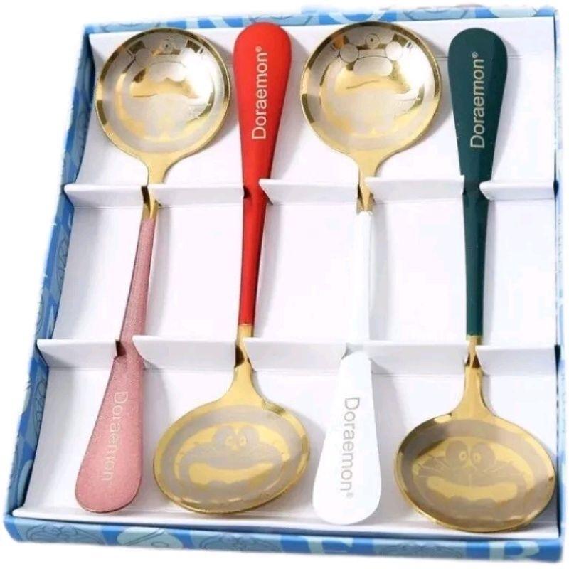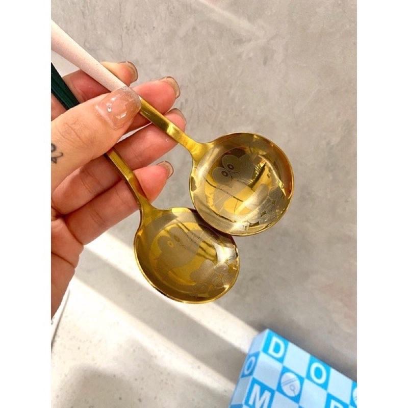 Set 4 Thìa Muỗng Doraemon Inox 304 mạ vàng Cho Bé ️ Thìa Inox Mạ Vàng Cán Dài Nhiều Màu Với thiết kế tròn, rộng phù hợp khuôn miệng, dễ dàng xúc cơm, soup, chá