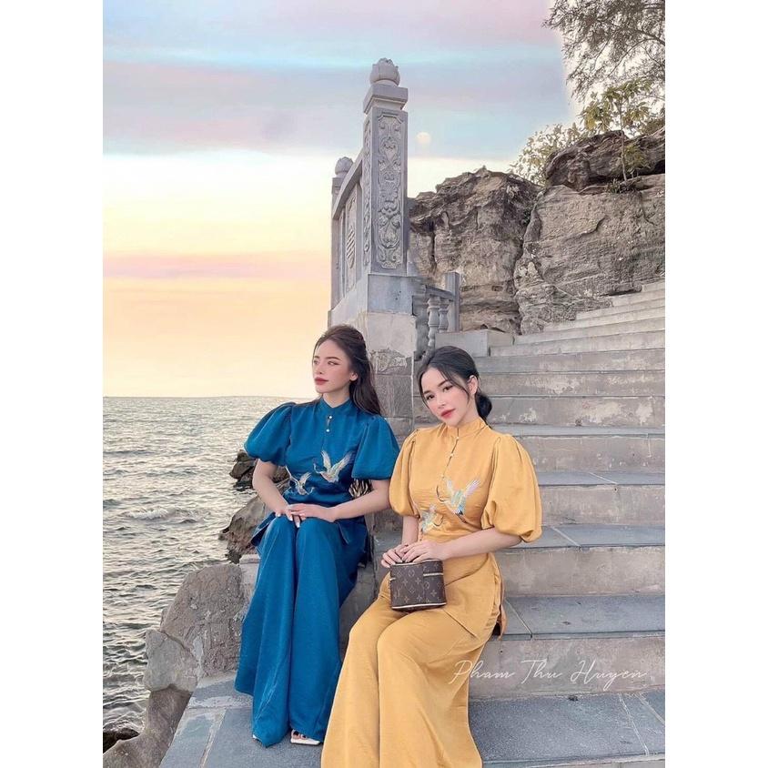 ✨Set đồ lam đi chùa cách tân thêu tay phồng có đính hạt