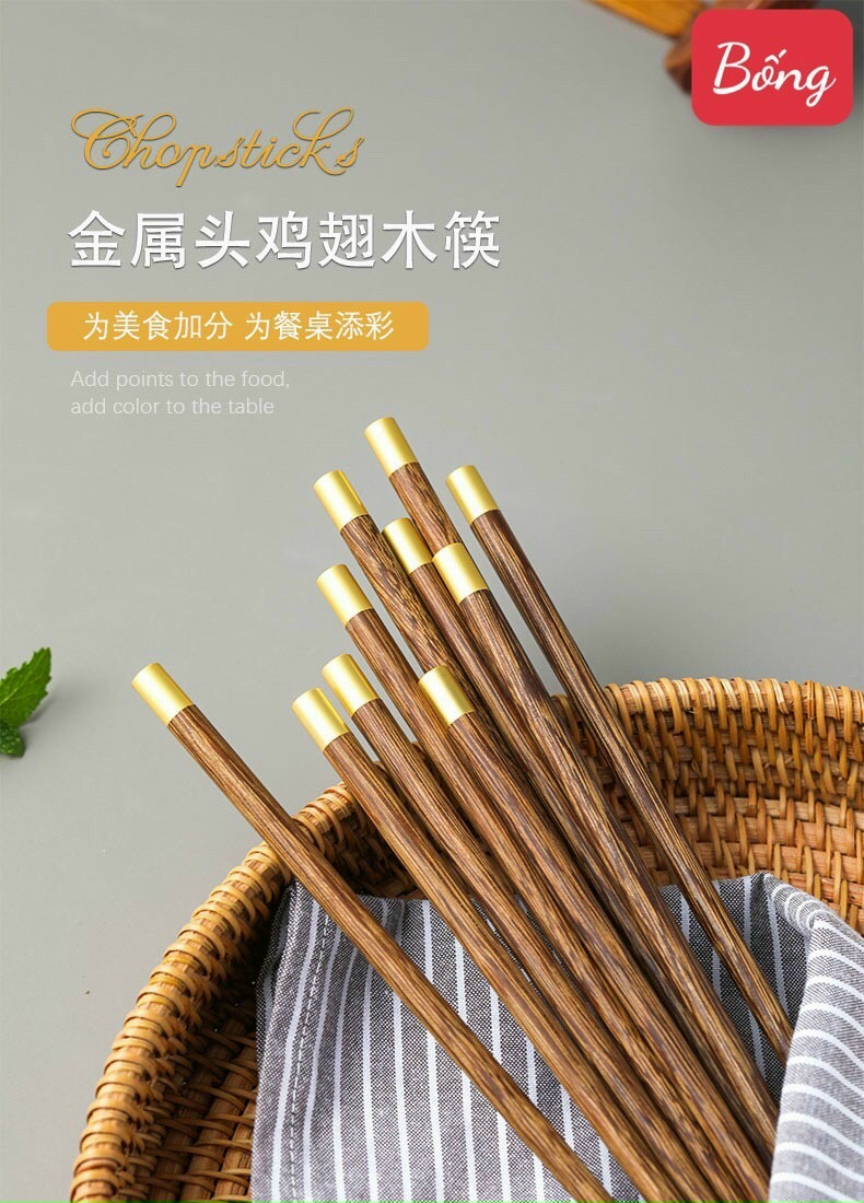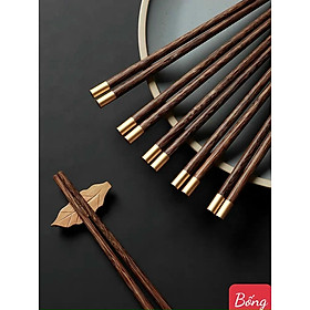 Được làm bằng chất liệu chống mốc chống mùi Đũa ko trơn thích hợp cho vui gắp mọi loại thước ăn Màu đen huyền bí đc bọc thêm một lớp mạ vàng trên đầu đũa