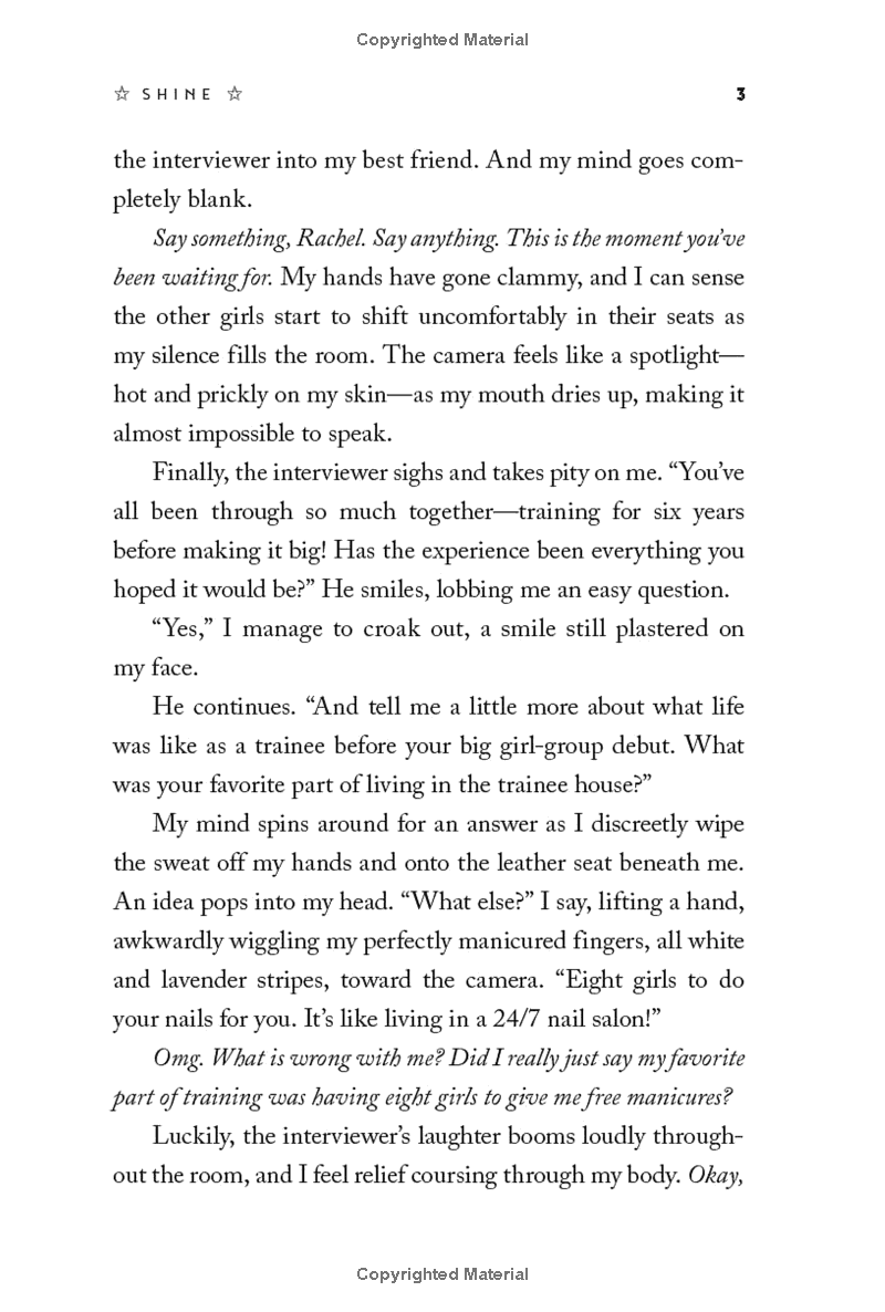Not so much. As the dark scandals of an industry bent on controlling and commodifying beautiful girls begin to bubble up, Rachel wonders if she’s strong enough to be a winner, or if she’ll end up crushed… Especially when she begins to develop feelings for K-pop star and DB golden boy Jason Lee. It’s not just that he’s charming, sexy, and ridiculously talented. He’s also the first person who really understands how badly she wants her star to rise.
