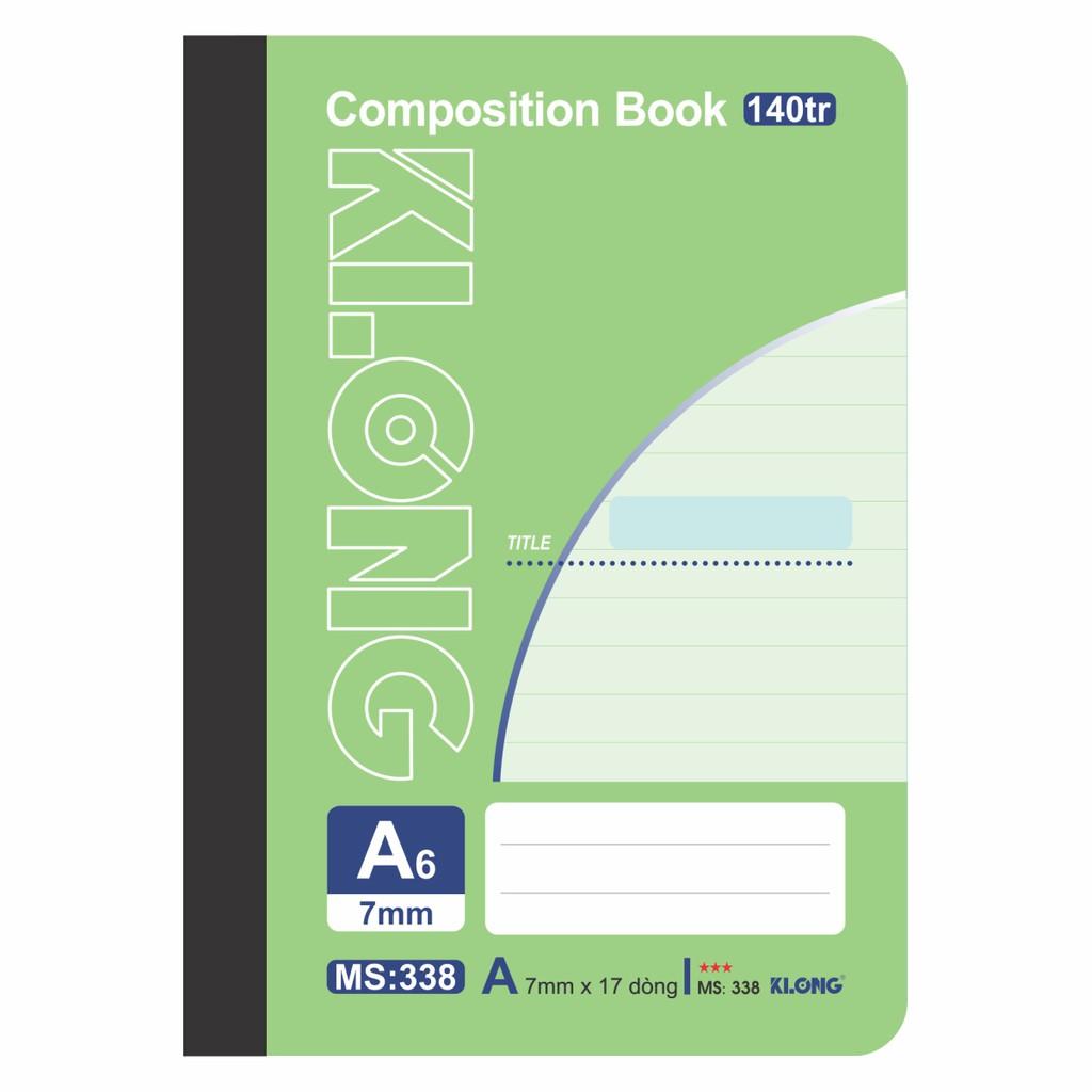 Sổ kẻ ngang may dán gáy Composition book KLONG A6 140 trang 58/92; MS: 338 - Định lượng: 58 g/m2 - Độ trắng: 92 %ISO - Số trang: 140 trang - Kích thước: (105 x