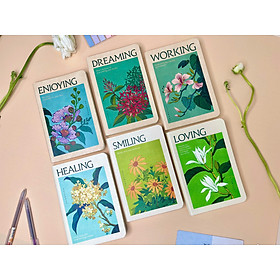 6 mẫu sổ tương ứng với 6 cảm xúc và 6 loài hoa Việt Nam: Enjoying - Hoa Bằng lăng Dreaming - Hoa Mẫu đơn Working - Hoa Ban Healing - Hoa Mộc Smiling - Hoa Dã quỳ Loving - Hoa Ngọc lan