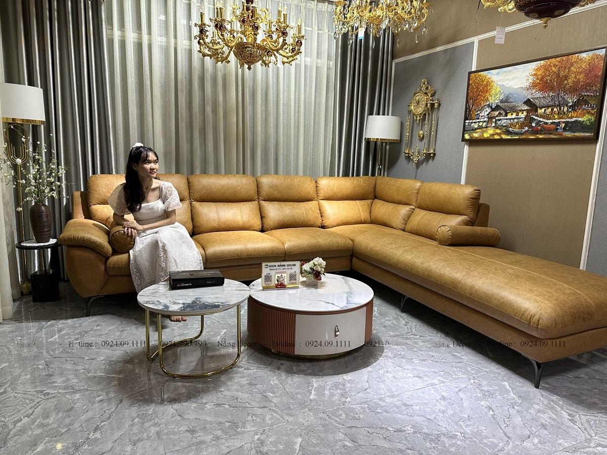✨Sofa góc L da bò Italy Juno sofa màu vàng bò – SFLCT01 3m3 x 2m8 hàng cao cấp chuẩn da bò nhập khẩu Ý