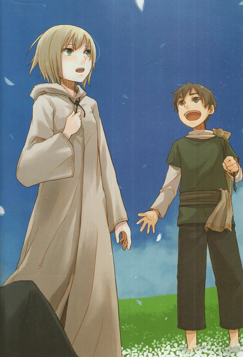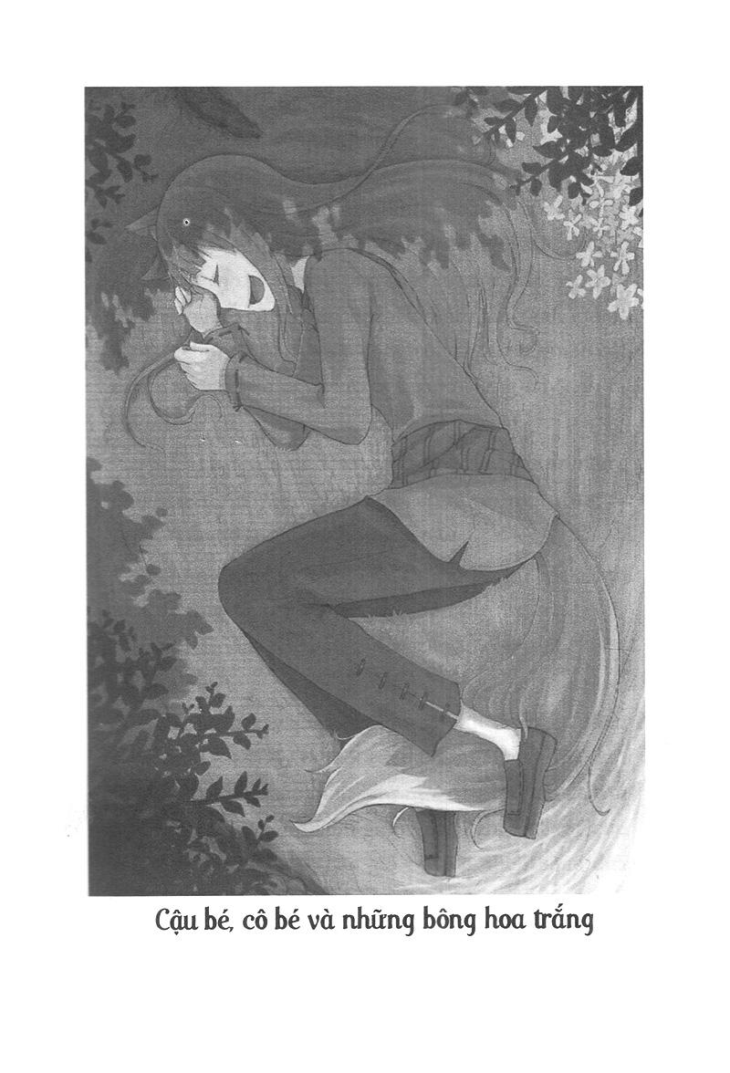Tạm gác lại màn truy đuổi kẻ lừa đảo Eve, tập 7 của “Sói và gia vị” là một tuyển tập ba câu truyện ngắn thú vị xoay quanh chủ đề “màu sắc” được đăng trên trang chủ của tạp chí Dengeki Bunko và được đánh giá rất cao. Mở đầu là “Cậu bé, cô bé và Những bông hoa trắng” kể về cuộc phiêu lưu của Holo trước khi gặp Lawrence, cô đã cùng đồng hành với Klass và Aries – hai đứa trẻ mới bị đuổi ra khỏi dinh thự, đang tìm đường tới biển. Cuộc hành trình ngắn này khiến Holo cảm thấy nỗi buồn của sự cô đơn và mở ra sự cần thiết phải có một người cùng đồng hành trên chuyến hành hường trở về quê nhà Yoitsu.