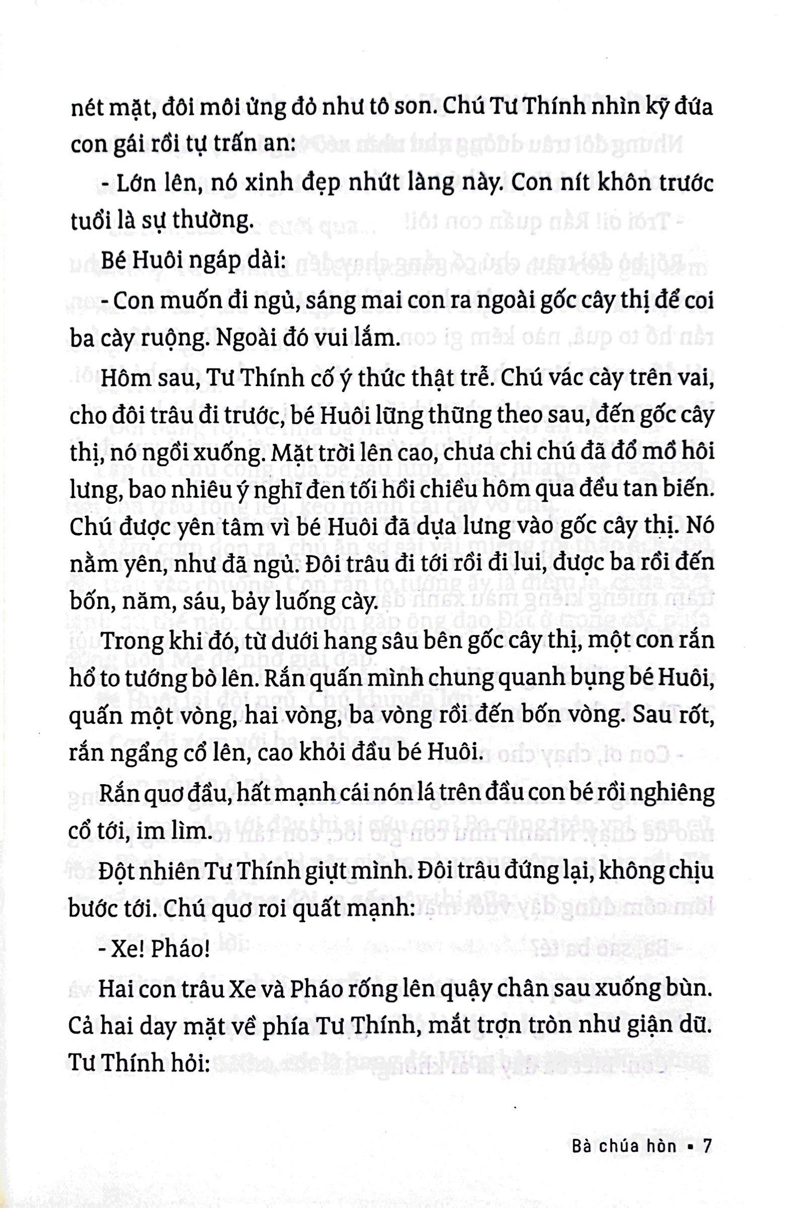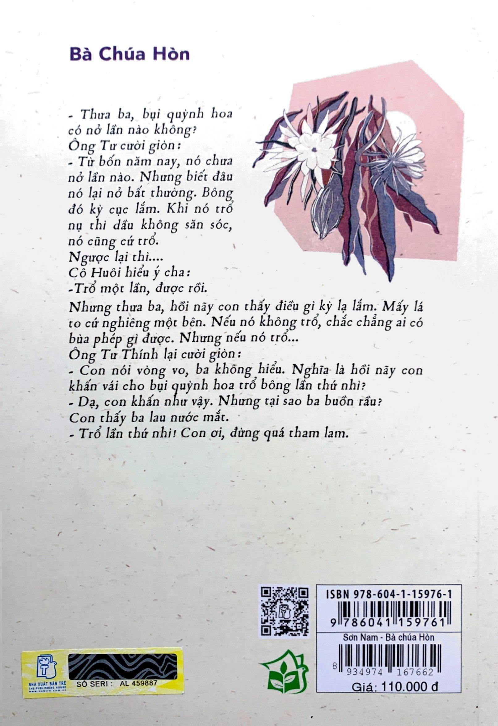 Mua tại TiktokTập sách in sang trọng, giấy trắng như là kỷ vật cho những ai yêu nhà văn Sơn Nam, giọng văn của ông già Nam Bộ này. Bà Chúa Hòn mang không khí miệt vườn, màu sắc lịch sử, và càng đọc lại càng mê.