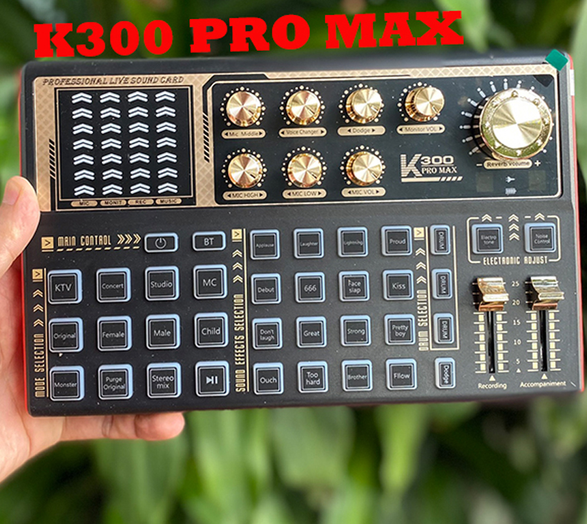 ️ Soundcard hát livestream K300 tích hợp 20 chế độ hiệu ứng khán giả giúp tăng tương tác khi trò chuyện trong buổi livestream: tiếng vỗ tay, tiếng cười, chê bai, quạ kêu, súng bắn,….