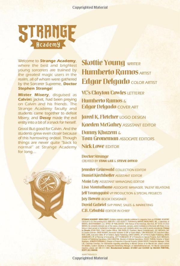 Mua tại TiktokStrange Academy: Wish-Craft The Strange Academy kids go out for a night on the town in New Orleans! Some of the students decide to take a tour of a famous NOLA graveyard…and you know how stories about teens in graveyards usually go! But Emily takes a very different field trip of her own — and the secret origin of Zoe Laveau is revealed! Then, nothing can prepare you for a glimpse of the future of the Strange Academy…and the entire Marvel Universe. You won’t believe your eyes! But one thing is for sure — whether in the present or the future, school life doesn’t get any easier for the students of the mystic arts!