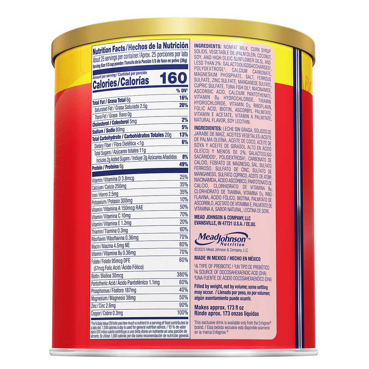 Sản phẩm được nhập khẩu trực tiếp từ Mexico, không chứa thành phần biến đổi Gen. Sản phẩm chứa bộ DHA cho trí não, 22 dưỡng chất cho bữa ăn hoàn thiện, Prebiotics & Vitamins cho hệ miễn dịch.