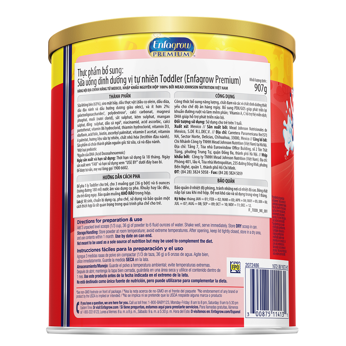Sữa Bột Enfagrow Premium Toddler Hương Sữa Tự Nhiên cho trẻ trên 1 tuổi (907g)