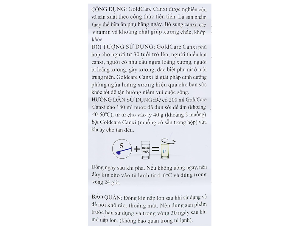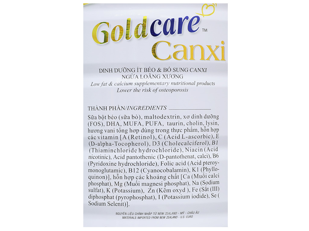 Sữa bột Goldcare Canxi 900g - Ít béo, bổ sung Canxi cho người lớn tuổi, suy nhược