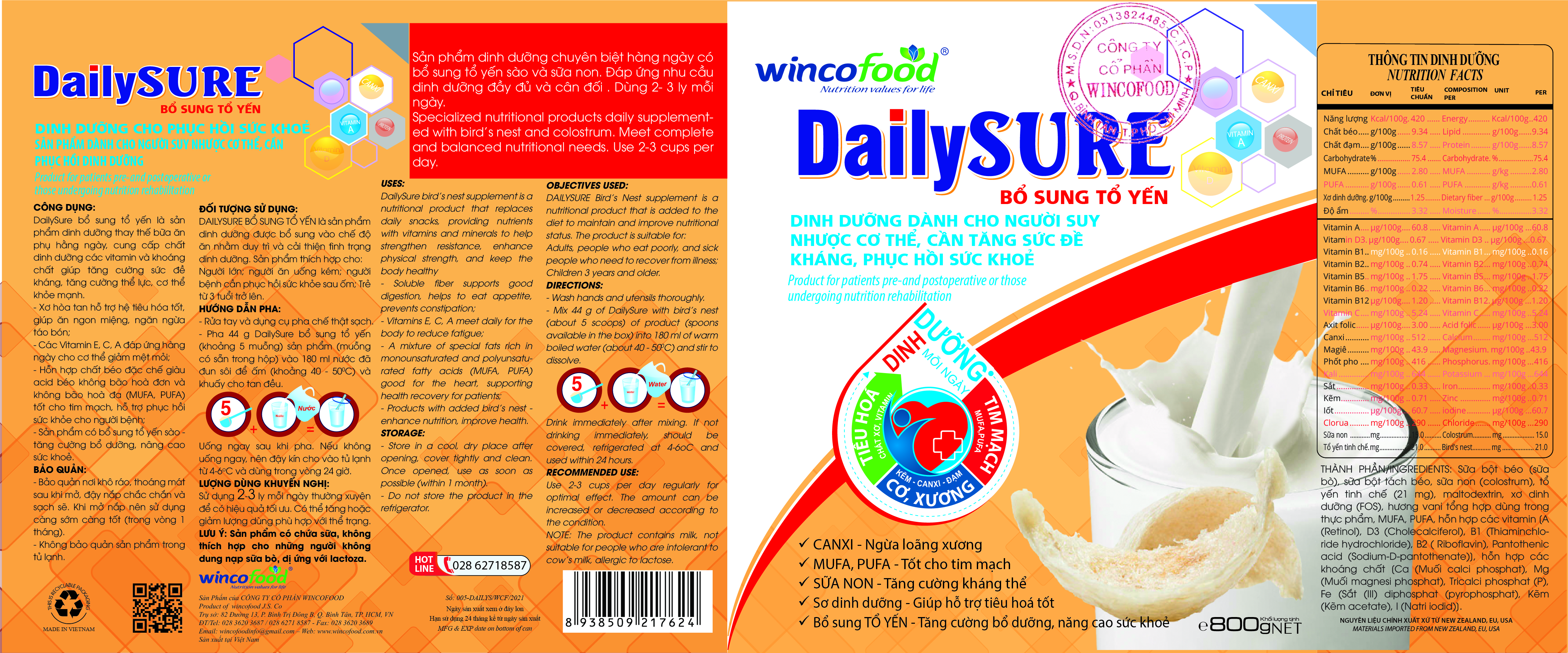 ✨Sữa non bổ sung tổ yến Wincofood DailySURE (800g/lon)