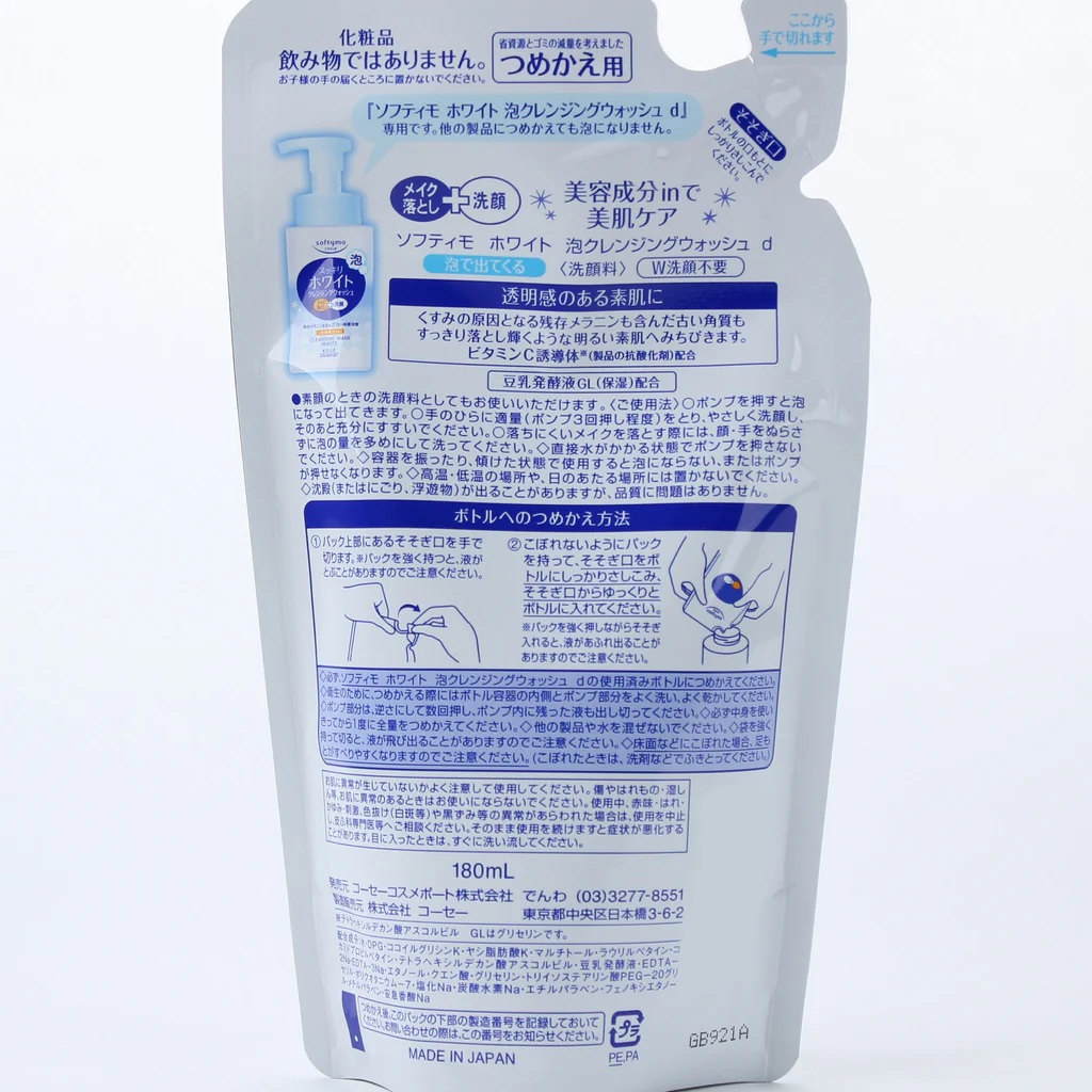 ✨Sữa Rữa Mặt & Tẩy Trang Tạo Bọt Dưỡng Trắng Softymo Kose Nhật Bản Túi Refill (180ml)