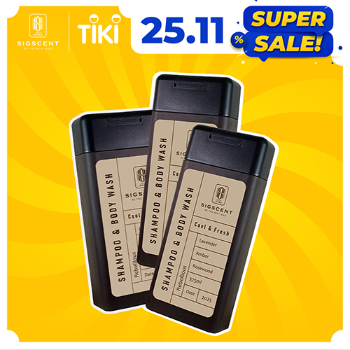 - 3 chai Dầu gội Sữa tắm 2in1 hương nước hoa cao cấp cho Nam SIGSCENT 375ml Dầu gội Sữa tắm SIGSCENT hương nước hoa cao cấp tiện lợi với sự kết hợp 2 trong 1 giúp tóc chắc khỏe, tạo cảm giác sảng khoái khi sử dụng. Sản phẩm có hương Gỗ hổ phách & Hoa oải hương cùng với hương nước hoa nam tính khẳng định cá tính của bạn. Thiết kế chai với nắp bật tiện dụng để vừa trong túi đồ hay vali du lịch mà không lo lem bẩn ra đồ đạc. MÔ TẢ SẢN PHẨM Thành phần: Purified water, Sodium Laureth Sulfate (SLES), Cocamidopropyl Betaine (CAB), Decyl Glucoside, Glycerin, Glycol Distearate (and) Sodium Laureth Sulphate (and) Cocamide MEA, PEG-7 Glyceryl Cocoate, PEG-40 Hydrogenated Castor Oil, Fragrance, Sodium PCA, Dimethiconol (and) TEA - Dodecylbenzenesulfonate, Sodium chloride, Niacinamide, D-panthenol, Polyquaternium 10, Allantoin, Guar Hydroxypropyltrimonium Chloride, Menthol (and) Menthyl Lactate, DMDM Hydantoin, Disodium EDTA. Công dụng