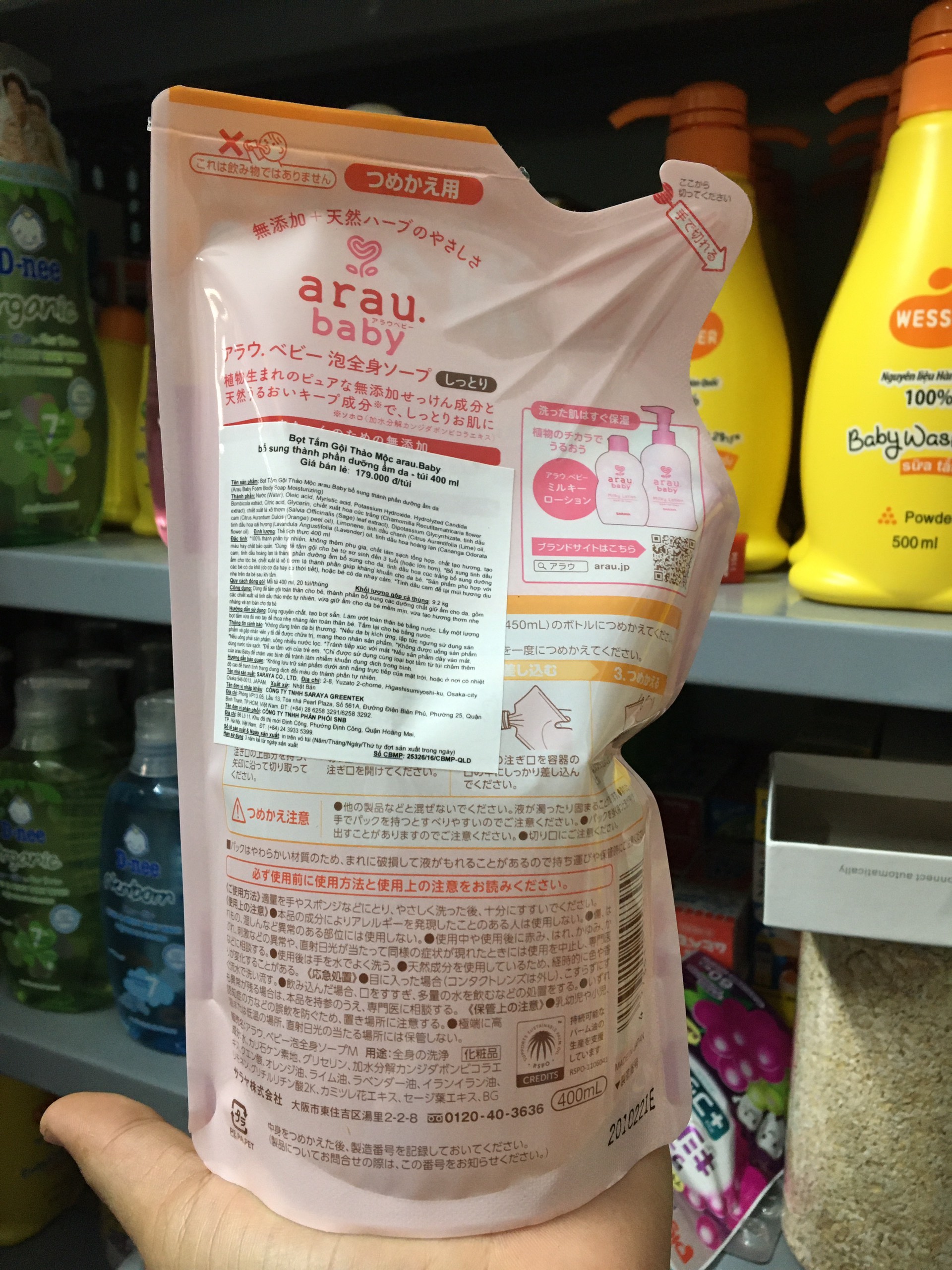 Review Hà namSữa tắm gội Arau dạng túi 400ml và dạng chai 450ml