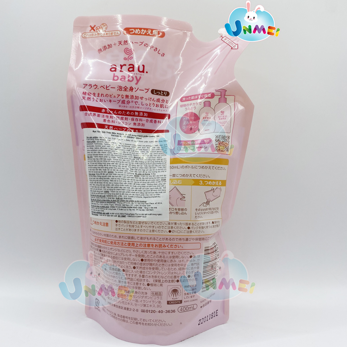Mua tại TiktokSữa Tắm Dưỡng Ẩm Arau Baby Túi 400ml Sản phẩm có thể thay đổi mẫu mã bao bì tùy từng đợt nhập hàng