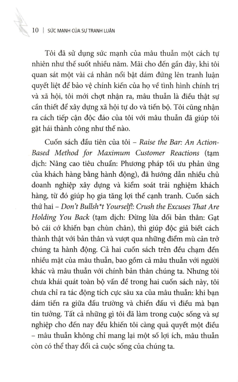 Sức Mạnh Của Sự Tranh Luận sẽ hướng dẫn bạn phương pháp này thông qua nhiều ví dụ thực tiễn trong cuộc đời và sự nghiệp của chính tác giả cũng như cuộc đời của những người khác, những người đủ can đảm để đương đầu với mâu thuẫn và đã cải thiện cuộc sống, đạt được thành công.