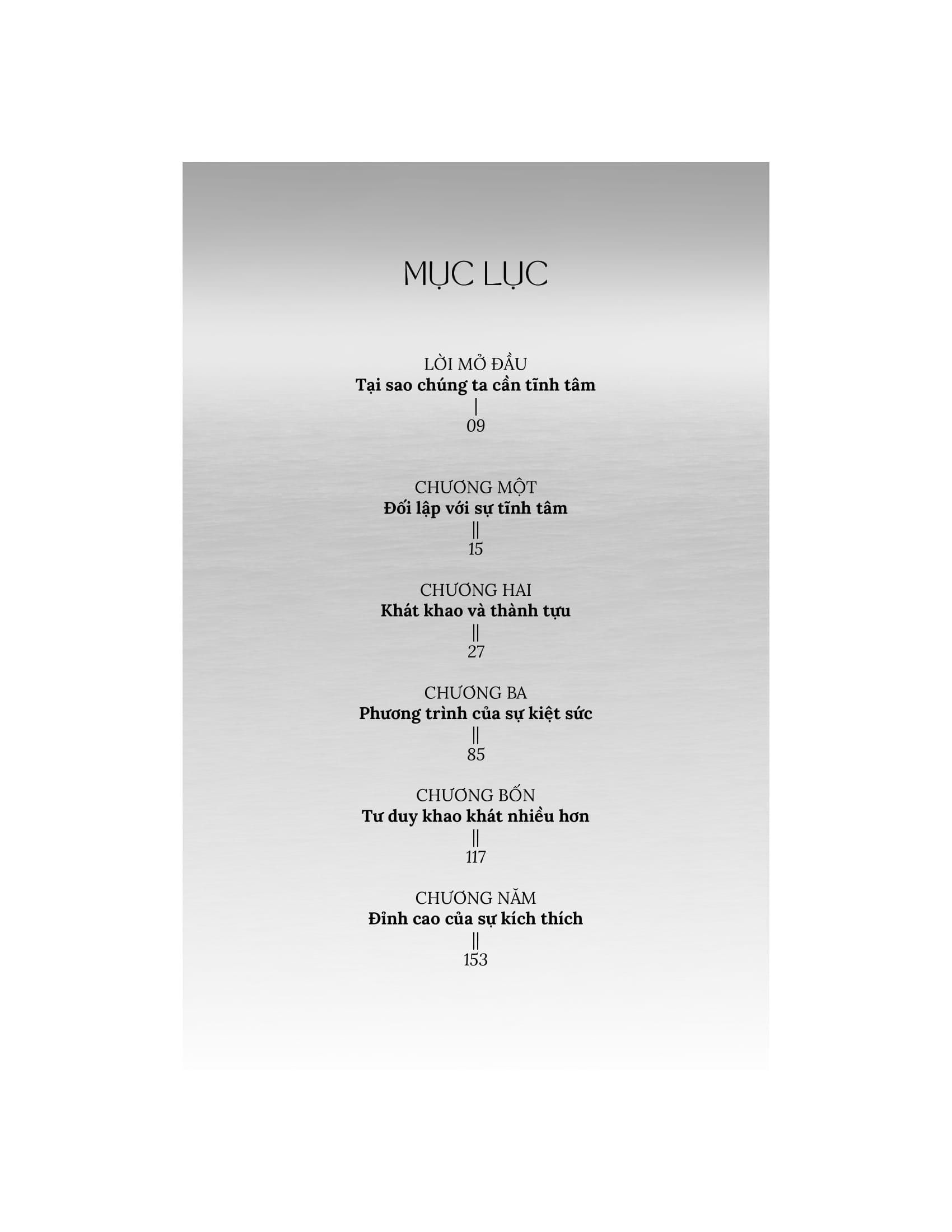 Sự tĩnh tâm không phải lúc nào cũng thú vị, đó chính xác mới là vấn đề. Khi chúng ta nuôi dưỡng sự tĩnh tâm, chúng ta bổ sung năng lực tinh thần để xử lý và tận hưởng điều phấn khởi đến với m.ình. Thay vì mặc định tâm trí của chúng ta bị kích thích quá mức, thì nó lại bình tĩnh, và hơn hết, là sẵn sàng. Với sự tĩnh tâm là trạng thái tinh thần mặc định, chúng ta có thể đối mặt với những điều xảy ra ở mức tốt nhất.