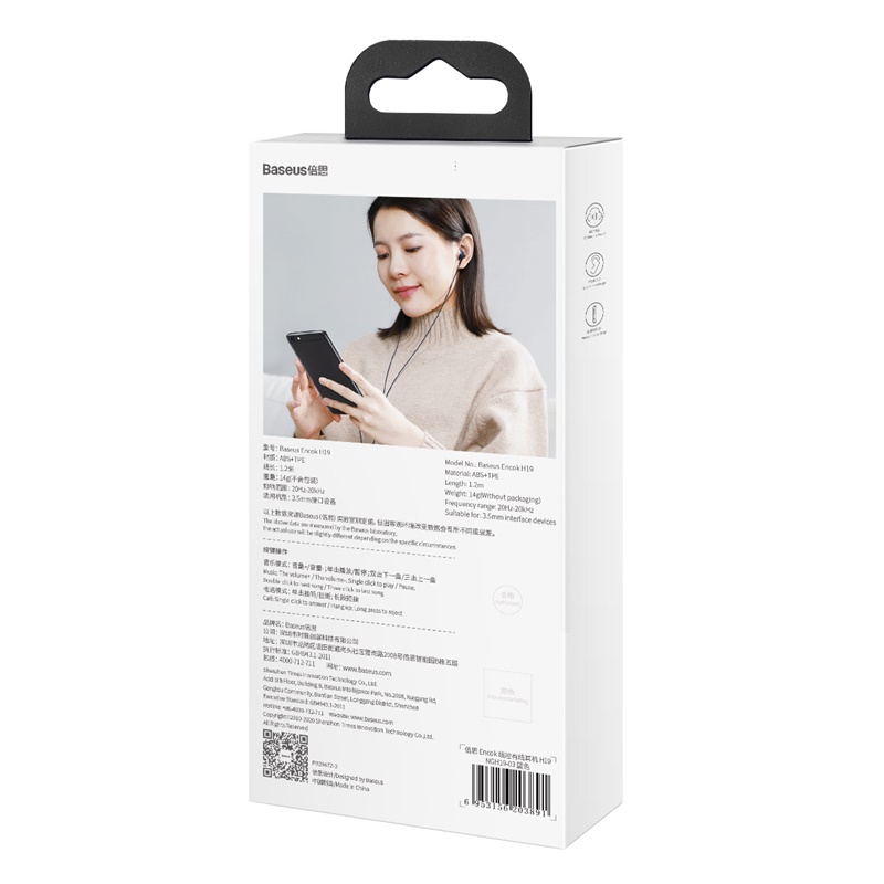 - Nếu bạn đang tìm cho mình một chiếc tai nghe thời trang, vừa có khả năng đáp ứng tốt nhu cầu nghe gọi to rỏ vừa có khả năng mang đến những trải nghiệm âm nhạc sống động và với giá thành siêu hợp lý thì đó chỉ có thể là tai nghe Baseus Encok H19 . Một chiếc tai nghe cơ bản với Jack Audio AUX3.5mm phổ thông nhưng lại mang trong mình một chất âm sống động đến bất ngờ với hiệu ứng 6D hifi Surround.