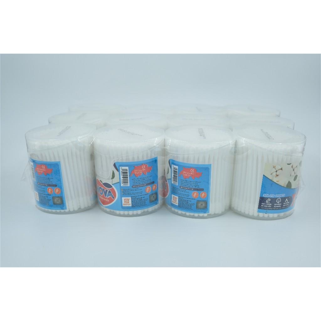 Tăm bông vệ sinh NOVA size M - Thiết kế thông minh, dễ rút với đầu bông mềm mịn, không rụng sợi, an toàn cho cả người lớn và trẻ nhỏ. Hộp gồm 160 que,