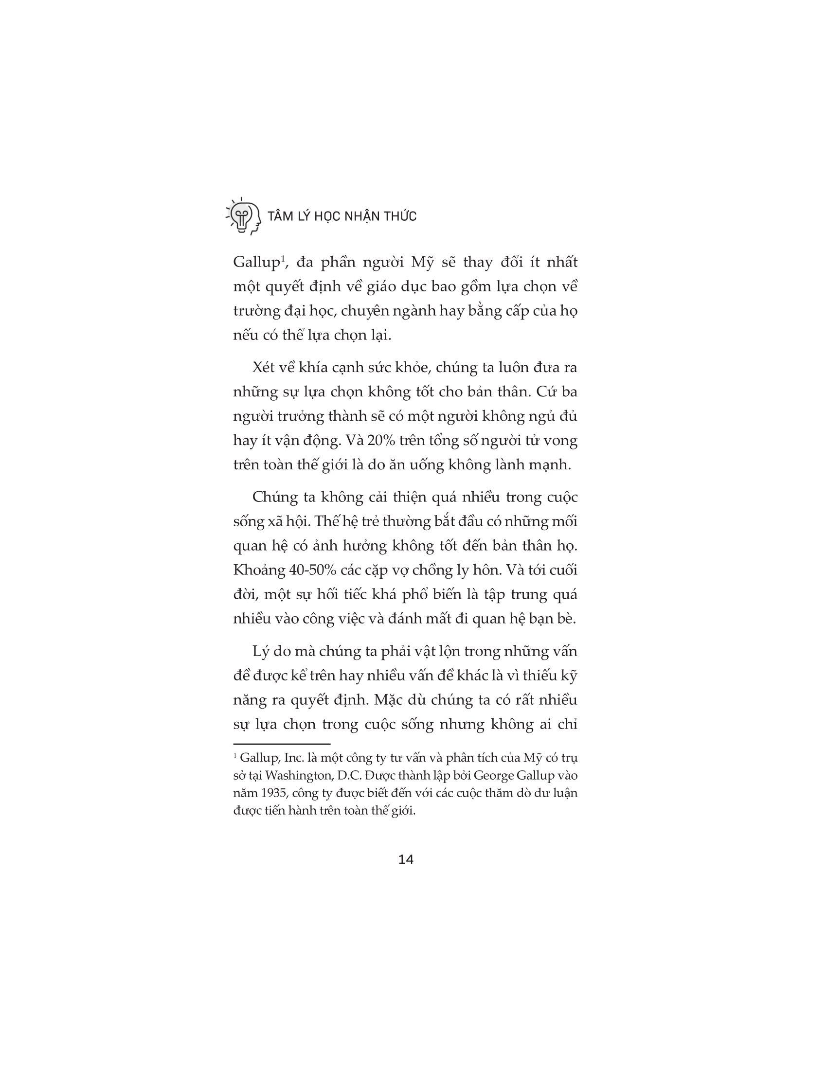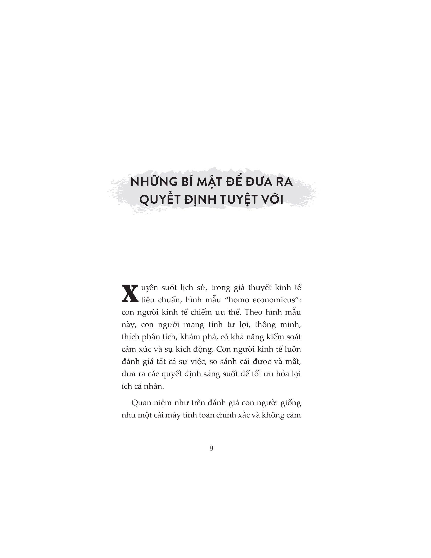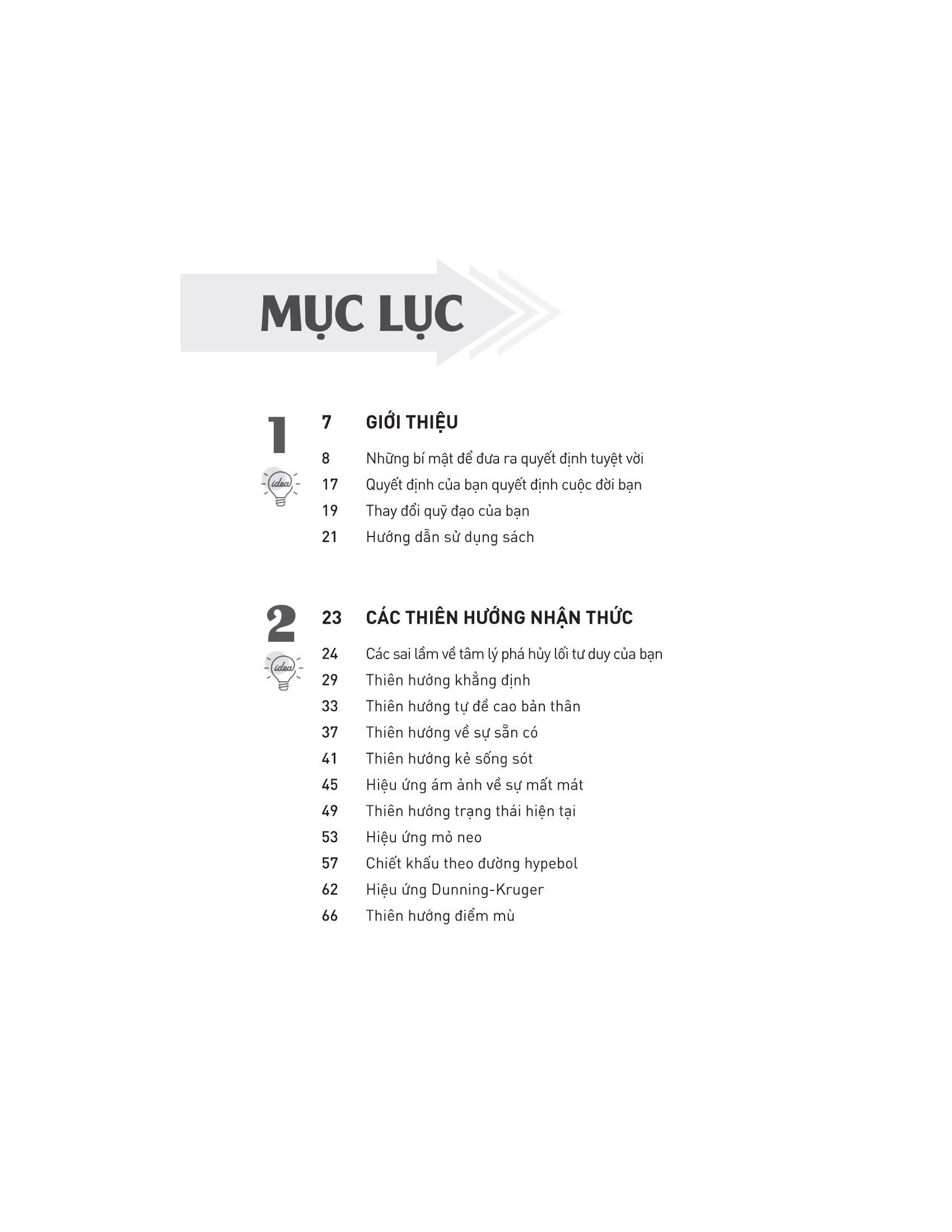 Cụ thể, trong cuốn sách này chúng ta sẽ đào sâu tìm hiểu tất cả các yếu tố tâm lý học ảnh hưởng đến khả năng ra quyết định và lựa chọn của chúng ta, bao gồm: