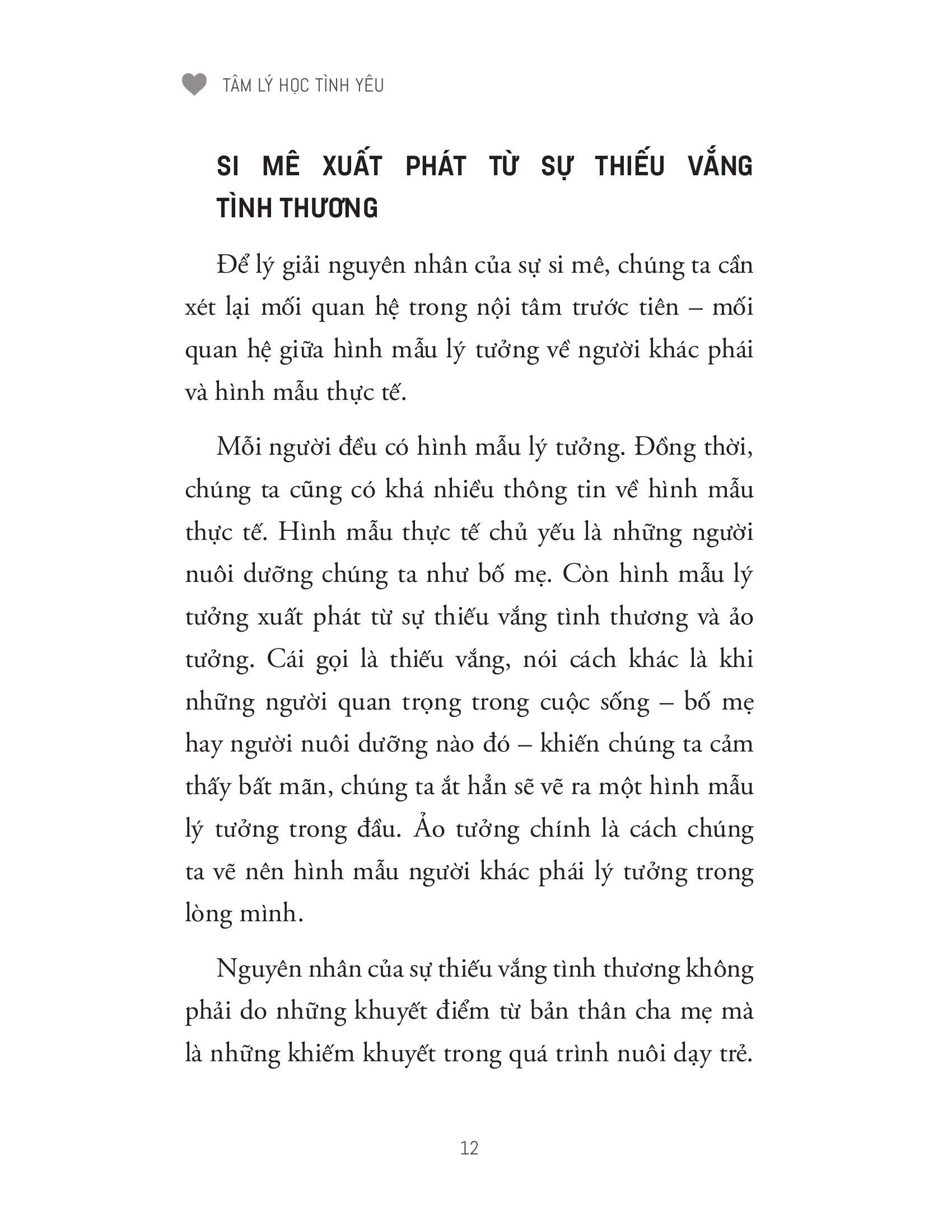 Mua tại TiktokTâm Lý Học Tình Yêu Thông qua lăng kính triết học và khả năng phân tích những quan điểm của các triết gia đa hệ phái, TÂM LÝ HỌC TÌNH YÊU sẽ diễn giải, phân tích những hiện tượng tâm lý phức tạp của con người trong tình yêu, những cãi vã, quan hệ ngoài luồng, cảm giác chán nản khi yêu xa, yêu lâu cùng những trạng thái tâm lý phức tạp, những biến chuyển đầy tinh tế, từ đó giúp chúng ta hiểu sâu sắc hơn về tâm lý của một người trong tình yêu của đối phương.