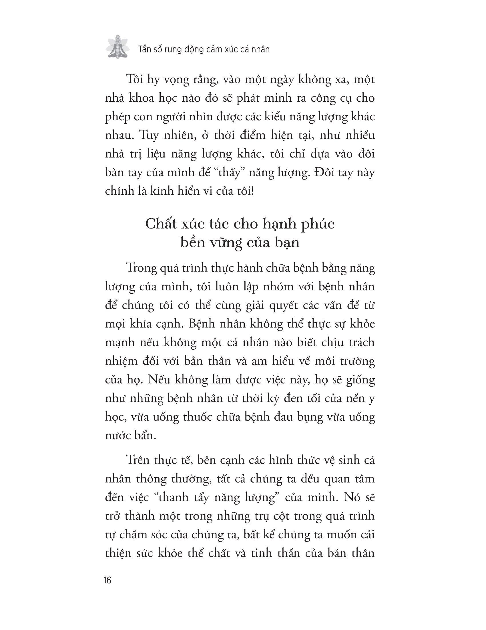 Vầng hào quang chứa năng lượng xung quanh ta là một phần quý giá trong danh tính của chúng ta, nó độc nhất như dấu vân tay của chúng ta vậy. Nói cách khác, vầng hào quang có thể được gọi là “ID năng lượng” riêng biệt, phân biệt trạng thái của mỗi người. Tần số rung động cảm xúc cá nhân sẽ cung cấp cho bạn những kiến thức về năng lượng, từ đó hướng dẫn chi tiết cách mở khóa “ID năng lượng” của riêng bạn và cách sử dụng nó để định hướng cuộc sống của bản thân. Alla làm sáng tỏ những thuật ngữ thường bị hiểu lầm, như “thanh lọc”, “thanh tẩy năng lượng”, “ma cà rồng hút năng lượng” để bạn có thể biến nỗi sợ tiêu cực thành siêu năng lực đích thực của m.ình.