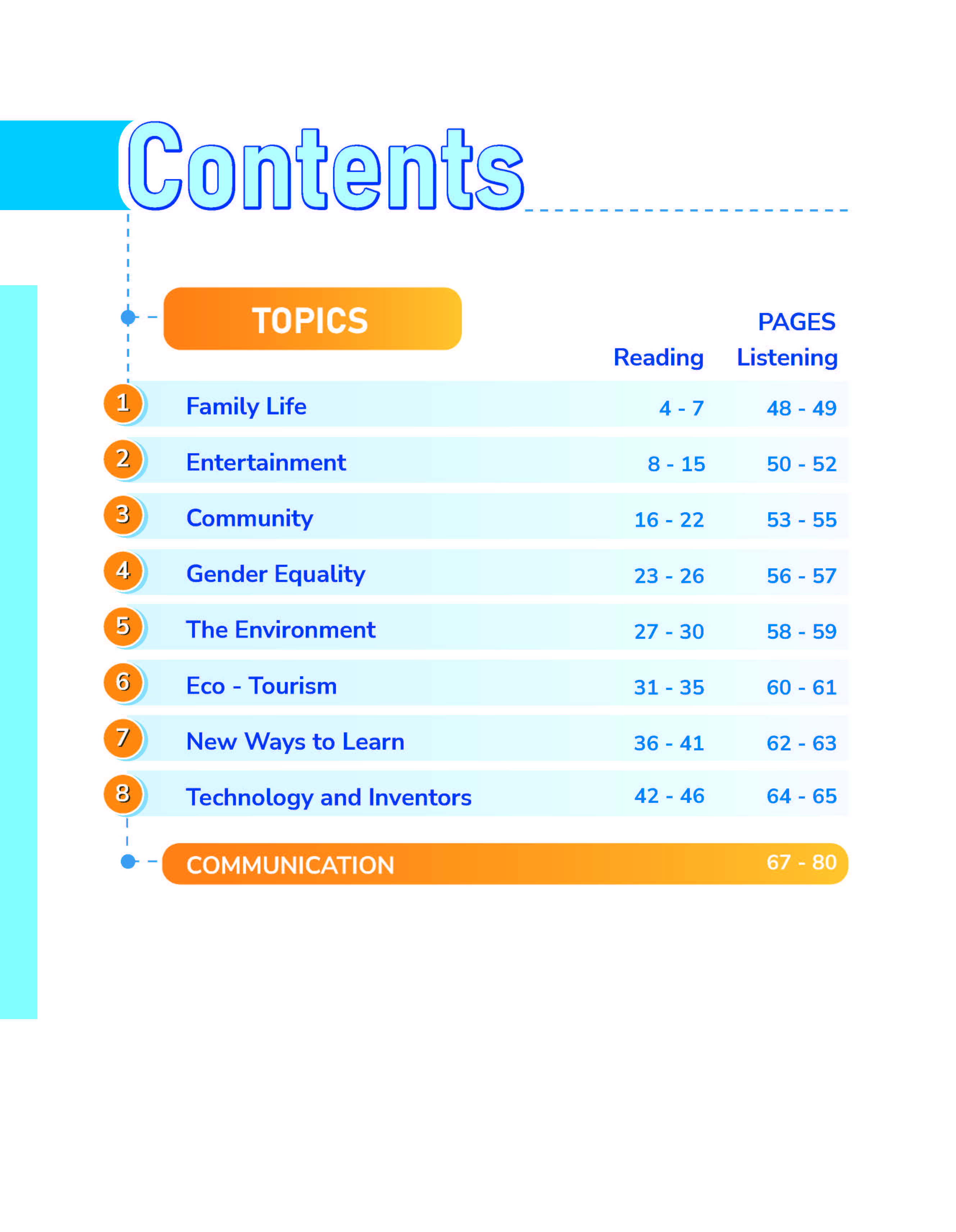 Bộ sách Tăng cường Kĩ năng Đọc, Nghe và Giao tiếp được thiết kế dành cho học sinh Trung học cơ sở và Trung học phổ thông (từ lớp 6 đến lớp 12) Với các