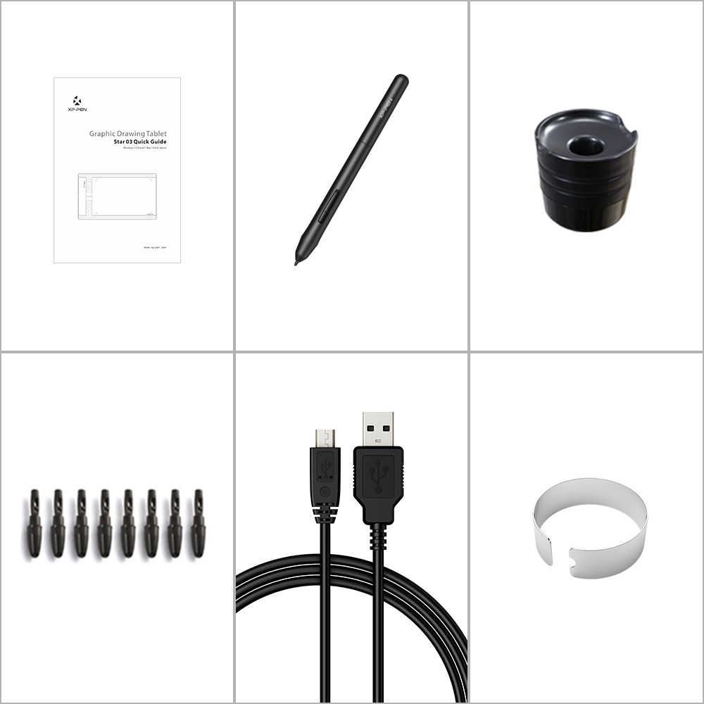 Bảng vẽ điện tử XP-PEN Star 03 V2 12INCH Bút Stylus không sạc - Hàng chính hãng - XP-Pen Star03 V2 Drawing Tablet Digital Graphics 10x6 inch for Beginner Kids with 8 Express Keys and Batter-Free P01 Stylus Bảng vẽ điện tử XP-Pen chuyên nghiệp 12 inch (10x6 inch). 8 phím tắt tùy chỉnh tính năng giúp thao tác nhanh chóng và tăng hiệu quả công việc. XP-Pen Star 03 mỏng chỉ 8mm, thật gọn ghẽ và tiện lợi khi muốn kẹp chung với chiếc laptop để sẵn sàng cùng bạn sáng tạo ở bất cứ đâu bạn muốn. Bản nâng cấp với lực nhấn 8192 mức cùng độ nhạy 266 RPI giúp biến Star 03 phiên bản 2 thành trợ thủ đắc lực của bạn với mức giá siêu hấp dẫn so với những lợi ích tuyệt vời mà một chiếc bảng vẽ có thể đem lại! Bút không pin, không sạc cao cấp Stylus P01 được thiết kế công thái học (ergonomi) cho cảm giác vẽ mượt mà như khi dùng với giấy và bút chì. Bút không cần sạc hay dùng pin giúp tiết kiệm chi phí, tiện lợi, lại bảo vệ môi trường. Nút bấm trên thân bút cho phép chuyển đổi chế độ Brush và Eraser nhanh chóng, giúp quá trình sáng tác hiệu quả hơn. Vẽ mượt mà & chính xác Tính năng chống rung thông minh cùng lực nhấn bút 8192 levels đem lại trải nghiệm vẽ thoải mái và dẹp bỏ âu lo. Cảm ứng 8192 mức lực nhấn cho phép vẽ nhiều đường nét với bề rộng cũng như đậm nhạt khác nhau, phù hợp với tay trái lẫn tay phải. Thêm không gian sáng tạo Bề mặt 12 inch trơn mịn để phù hợp cả khi nhìn nghiêng. Với vùng vẽ 10x6 inch, XP-Pen Star 03 mỏng hơn nhưng lợi hại hơn, nhạy bén hơn để bạn thể hiện tất cả kỹ năng sáng tạo. Các cạnh đọc bo cong để bạn vẽ thêm cảm giác thoải mái. 8 Phím tắt tùy chỉnh mọi thao tác 8 nút bấm có thể thiết lập mọi thao tác phím tắt giúp tối thiểu nhu cầu dùng bàn phím ngoài, hỗ trợ các tính năng chỉnh sửa bạn hay xài và các tổ hợp phím khác như Ctrl+S (Save), Ctrl+X (Undo), từ đầu, bảng vẽ điện tử XP-Pen Star 03 đã được thiết lập các tính năng mặc định: Brush enhance/weaken, zoom-in/out, Undo, hand tool, brush tool, erase, tuy nhiên bạn có thể vào driver của máy để chỉnh lại. Hỗ trợ cả phím tắt như khi cần mở nhanh một chương trình hay website nào đó. Tương thích với hầu hết hệ điều hành và các ứng dụng vẽ Driver XP-Pen Star 03 có thể làm việc với Windows 10/8/7/Vista, Mac OS 10.8 trở lên và tất cả các ứng dụng đồ họa thông dụng như Photoshop, Painter, Adobe Illustrator, Bạn cũng có thể dùng để viết tay, ghi chú thích với Microsoft Word, Pen Commander, Auto Pen Signer, để tiết kiệm thời trang theo phong cách mới thật nổi bật.