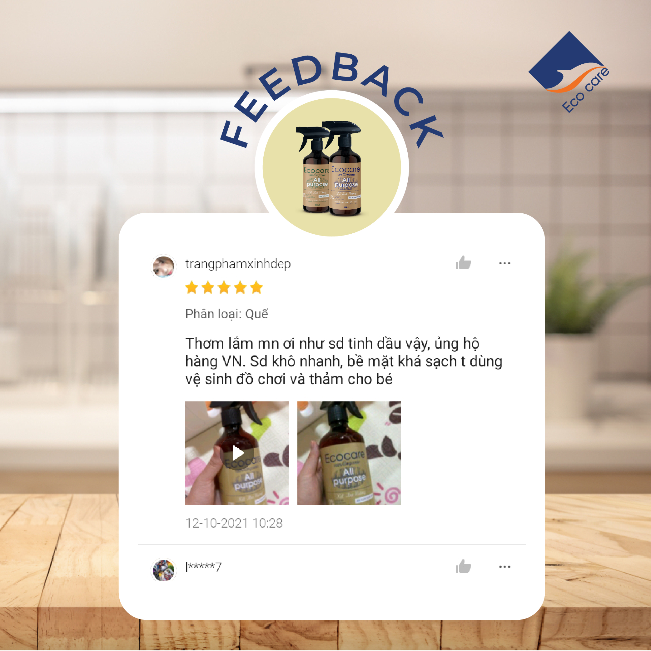 - Trước tiên, Công ty Ecocare xin cảm ơn Quý Khách hàng đã tin tưởng lựa chọn sản phẩm Nước xịt tẩy đa năng hữu cơ Bồ hòn của Ecocare